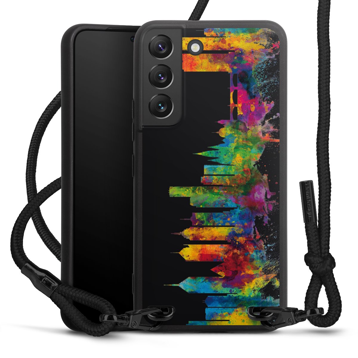 We use the solid direct print process for this phone case, which is why the print area only covers the back and the edge remains unprinted. The case to wear around your neck can be ordered unprinted, fully printed, or partially printed. For your design, either choose one of our exclusive shop motifs or get creative and create your own design, for example with photos and overlays. Design your own personal trend accessory and make an individual statement on the streets!
