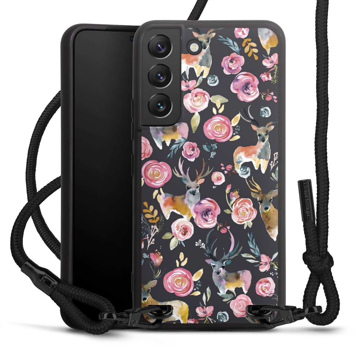 We use the solid direct print process for this phone case, which is why the print area only covers the back and the edge remains unprinted. The case to wear around your neck can be ordered unprinted, fully printed, or partially printed. For your design, either choose one of our exclusive shop motifs or get creative and create your own design, for example with photos and overlays. Design your own personal trend accessory and make an individual statement on the streets!