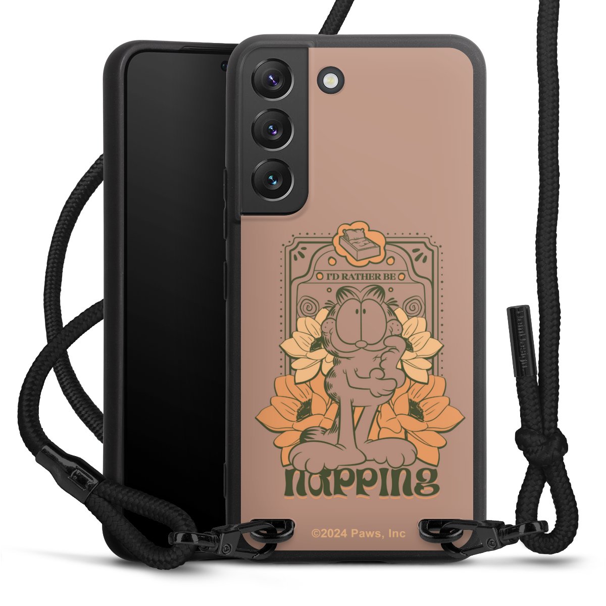 The matt black silicone case is made of flexible TPU (thermoplastic polyurethane) and offers robust protection. The durable, unbreakable material makes the cover flexible and dimensionally stable at the same time. The matte surface makes your design stand out more and is less susceptible to fingerprints and dirt. The stylish trend accessory fits comfortably in the hand and is perfectly complemented by the fabric (polyester) mobile phone strap. The braided fabric strap is approx. 1.70 metres long with a diameter of approx. 0.5 cm. Due to the special knotting technique, the length of the strap can be adjusted by simply pulling it, so that you can adapt it individually to your wishes. The practical case to wear around your neck is available with the fabric strap in black. As a little icing on the cake, we have provided the strap with a chic metal fastener in matt black. The strap is securely fastened to the case with loops made of high-quality genuine leather and press studs. The ends of the fabric strap are covered with metallic end caps and thus protected from fraying.