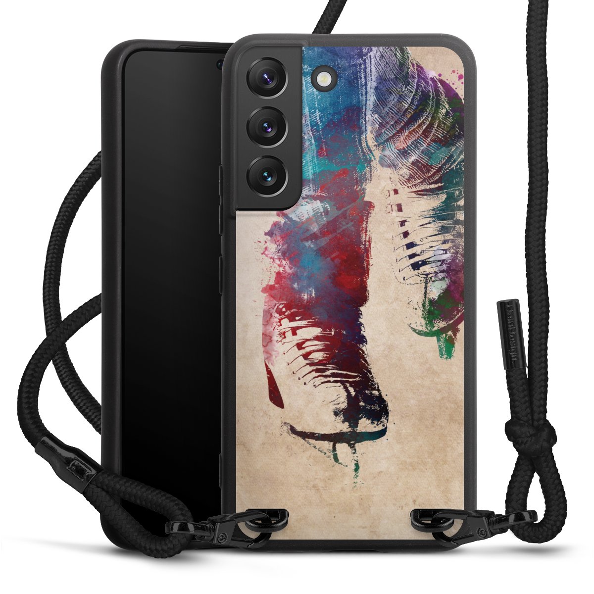 We use the solid direct print process for this phone case, which is why the print area only covers the back and the edge remains unprinted. The case to wear around your neck can be ordered unprinted, fully printed, or partially printed. For your design, either choose one of our exclusive shop motifs or get creative and create your own design, for example with photos and overlays. Design your own personal trend accessory and make an individual statement on the streets!