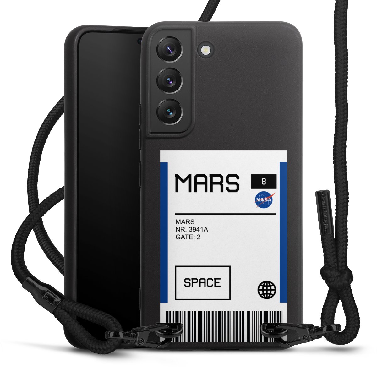 We use the solid direct print process for this phone case, which is why the print area only covers the back and the edge remains unprinted. The case to wear around your neck can be ordered unprinted, fully printed, or partially printed. For your design, either choose one of our exclusive shop motifs or get creative and create your own design, for example with photos and overlays. Design your own personal trend accessory and make an individual statement on the streets!