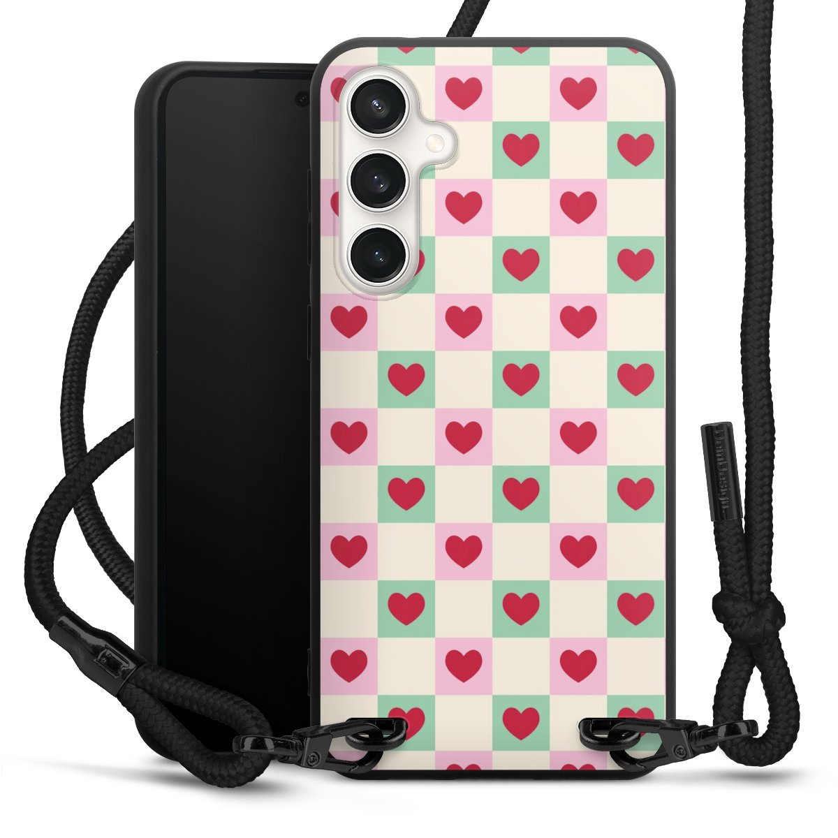 We use the solid direct print process for this phone case, which is why the print area only covers the back and the edge remains unprinted. The case to wear around your neck can be ordered unprinted, fully printed, or partially printed. For your design, either choose one of our exclusive shop motifs or get creative and create your own design, for example with photos and overlays. Design your own personal trend accessory and make an individual statement on the streets!