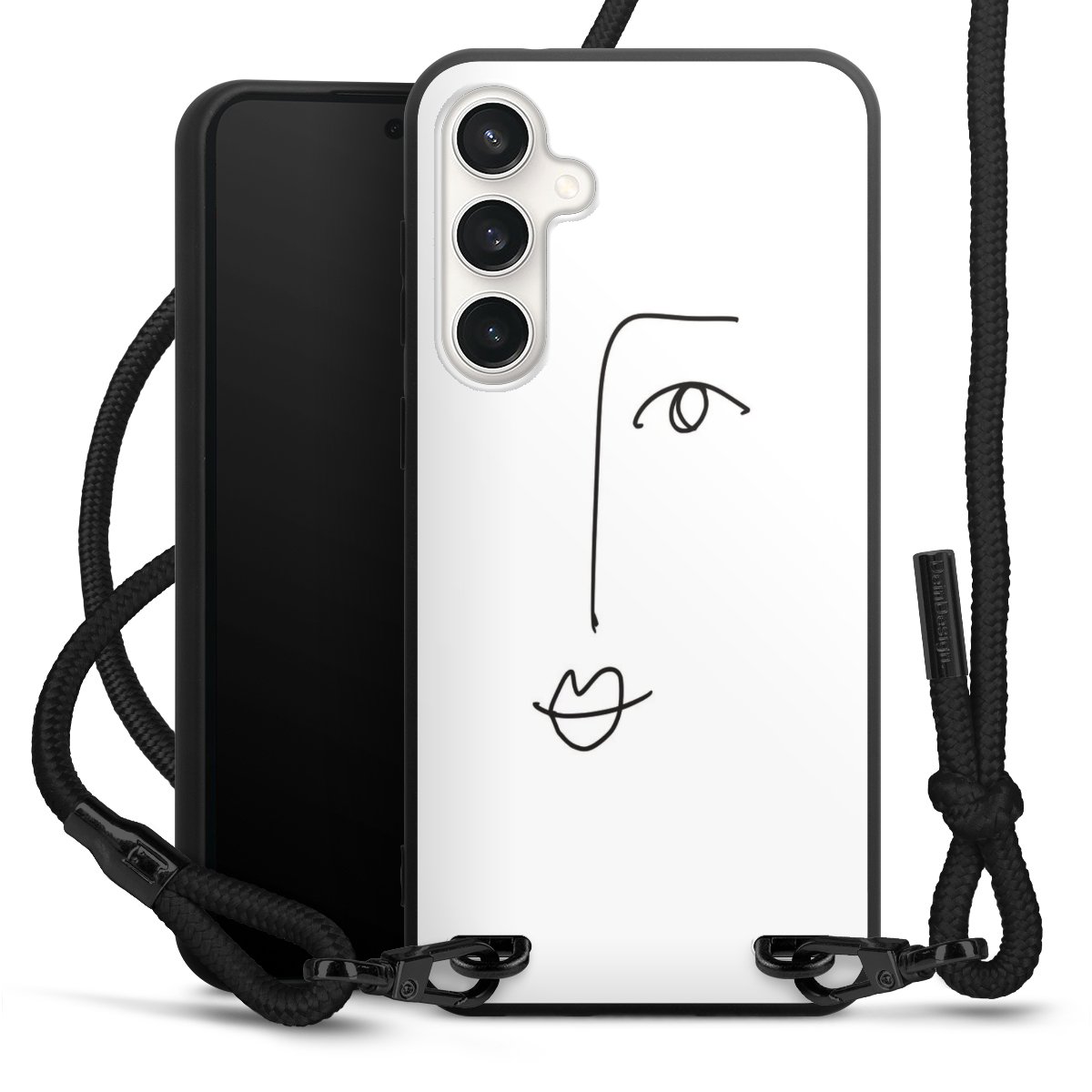 The matt black silicone case is made of flexible TPU (thermoplastic polyurethane) and offers robust protection. The durable, unbreakable material makes the cover flexible and dimensionally stable at the same time. The matte surface makes your design stand out more and is less susceptible to fingerprints and dirt. The stylish trend accessory fits comfortably in the hand and is perfectly complemented by the fabric (polyester) mobile phone strap. The braided fabric strap is approx. 1.70 metres long with a diameter of approx. 0.5 cm. Due to the special knotting technique, the length of the strap can be adjusted by simply pulling it, so that you can adapt it individually to your wishes. The practical case to wear around your neck is available with the fabric strap in black. As a little icing on the cake, we have provided the strap with a chic metal fastener in matt black. The strap is securely fastened to the case with loops made of high-quality genuine leather and press studs. The ends of the fabric strap are covered with metallic end caps and thus protected from fraying.