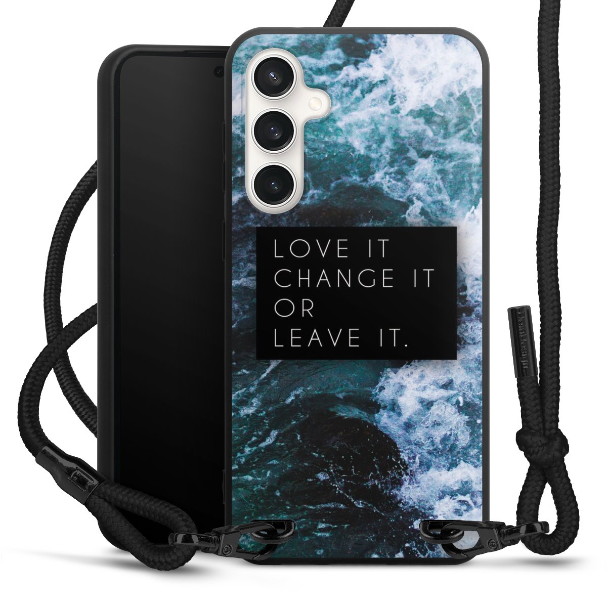 We use the solid direct print process for this phone case, which is why the print area only covers the back and the edge remains unprinted. The case to wear around your neck can be ordered unprinted, fully printed, or partially printed. For your design, either choose one of our exclusive shop motifs or get creative and create your own design, for example with photos and overlays. Design your own personal trend accessory and make an individual statement on the streets!