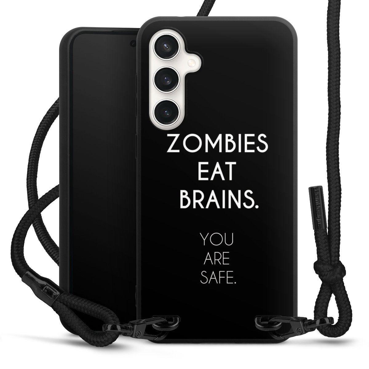 The matt black silicone case is made of flexible TPU (thermoplastic polyurethane) and offers robust protection. The durable, unbreakable material makes the cover flexible and dimensionally stable at the same time. The matte surface makes your design stand out more and is less susceptible to fingerprints and dirt. The stylish trend accessory fits comfortably in the hand and is perfectly complemented by the fabric (polyester) mobile phone strap. The braided fabric strap is approx. 1.70 metres long with a diameter of approx. 0.5 cm. Due to the special knotting technique, the length of the strap can be adjusted by simply pulling it, so that you can adapt it individually to your wishes. The practical case to wear around your neck is available with the fabric strap in black. As a little icing on the cake, we have provided the strap with a chic metal fastener in matt black. The strap is securely fastened to the case with loops made of high-quality genuine leather and press studs. The ends of the fabric strap are covered with metallic end caps and thus protected from fraying.