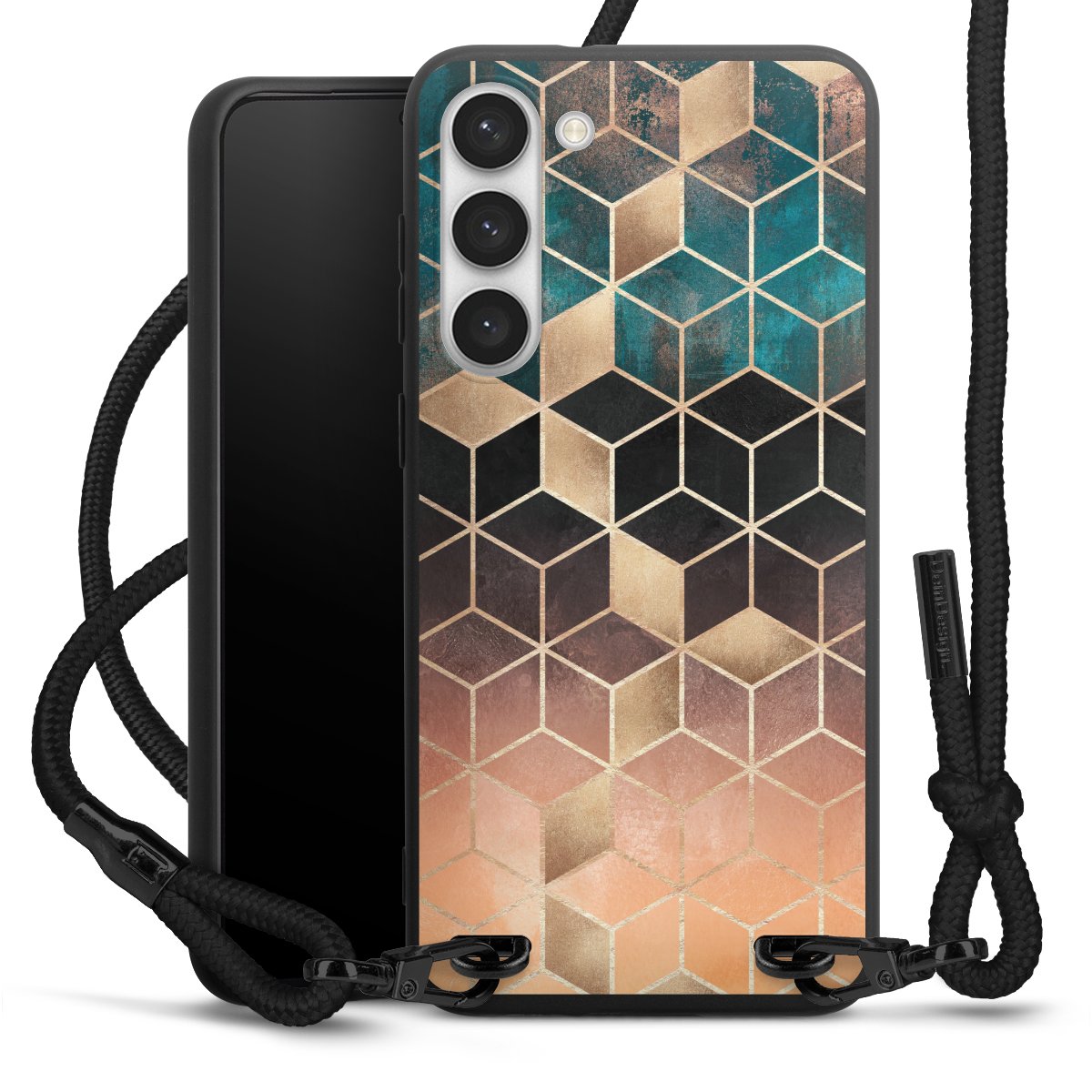 We use the solid direct print process for this phone case, which is why the print area only covers the back and the edge remains unprinted. The case to wear around your neck can be ordered unprinted, fully printed, or partially printed. For your design, either choose one of our exclusive shop motifs or get creative and create your own design, for example with photos and overlays. Design your own personal trend accessory and make an individual statement on the streets!