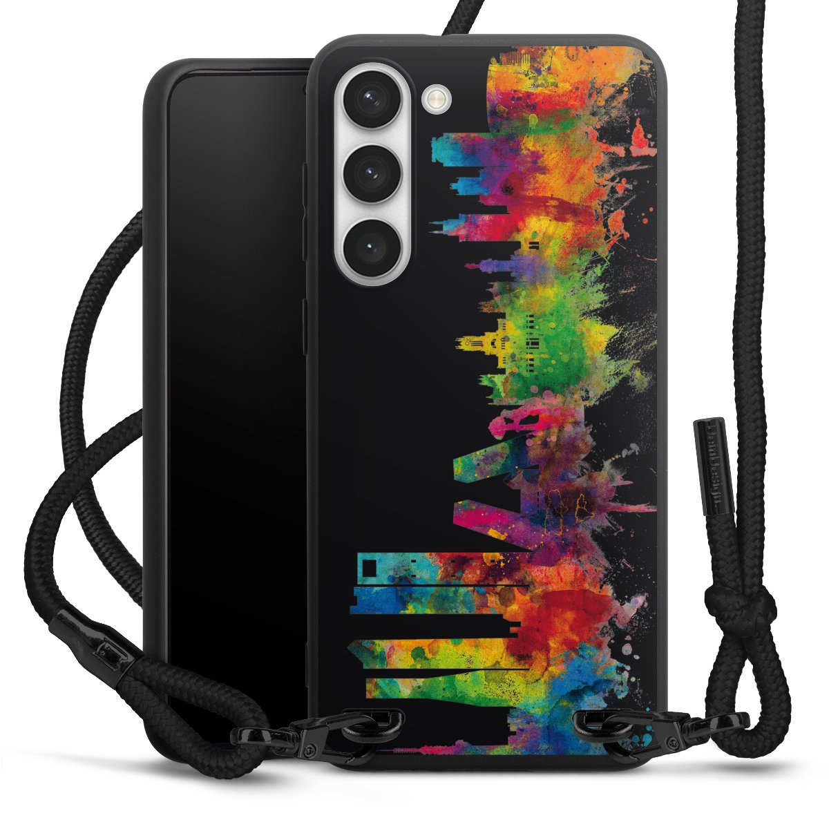 We use the solid direct print process for this phone case, which is why the print area only covers the back and the edge remains unprinted. The case to wear around your neck can be ordered unprinted, fully printed, or partially printed. For your design, either choose one of our exclusive shop motifs or get creative and create your own design, for example with photos and overlays. Design your own personal trend accessory and make an individual statement on the streets!