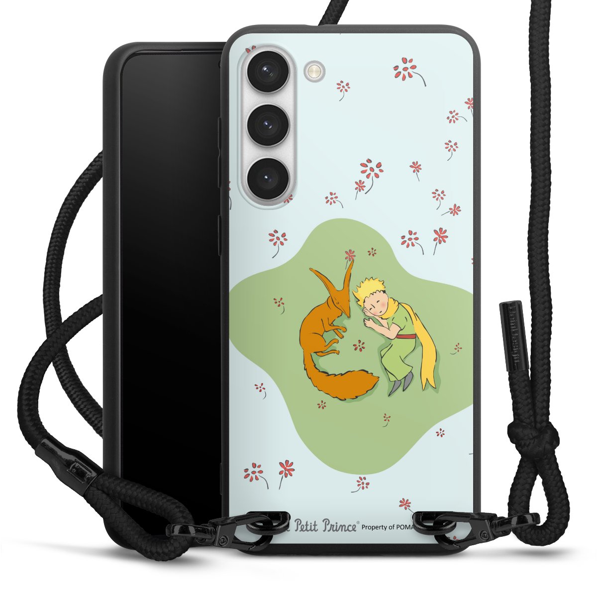 The matt black silicone case is made of flexible TPU (thermoplastic polyurethane) and offers robust protection. The durable, unbreakable material makes the cover flexible and dimensionally stable at the same time. The matte surface makes your design stand out more and is less susceptible to fingerprints and dirt. The stylish trend accessory fits comfortably in the hand and is perfectly complemented by the fabric (polyester) mobile phone strap. The braided fabric strap is approx. 1.70 metres long with a diameter of approx. 0.5 cm. Due to the special knotting technique, the length of the strap can be adjusted by simply pulling it, so that you can adapt it individually to your wishes. The practical case to wear around your neck is available with the fabric strap in black. As a little icing on the cake, we have provided the strap with a chic metal fastener in matt black. The strap is securely fastened to the case with loops made of high-quality genuine leather and press studs. The ends of the fabric strap are covered with metallic end caps and thus protected from fraying.