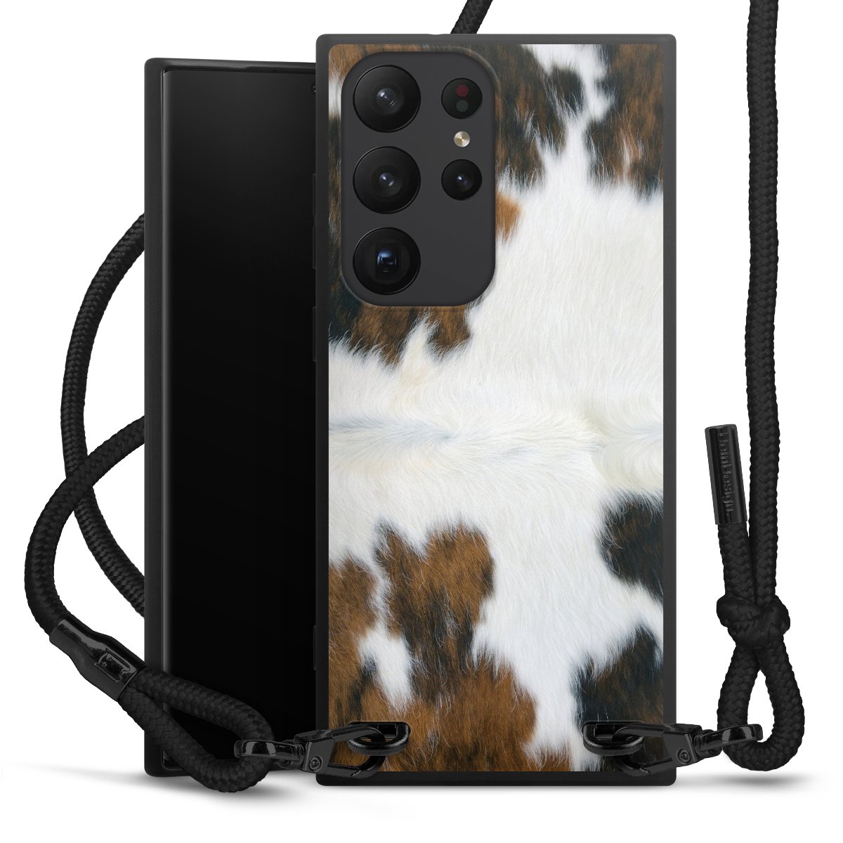 The matt black silicone case is made of flexible TPU (thermoplastic polyurethane) and offers robust protection. The durable, unbreakable material makes the cover flexible and dimensionally stable at the same time. The matte surface makes your design stand out more and is less susceptible to fingerprints and dirt. The stylish trend accessory fits comfortably in the hand and is perfectly complemented by the fabric (polyester) mobile phone strap. The braided fabric strap is approx. 1.70 metres long with a diameter of approx. 0.5 cm. Due to the special knotting technique, the length of the strap can be adjusted by simply pulling it, so that you can adapt it individually to your wishes. The practical case to wear around your neck is available with the fabric strap in black. As a little icing on the cake, we have provided the strap with a chic metal fastener in matt black. The strap is securely fastened to the case with loops made of high-quality genuine leather and press studs. The ends of the fabric strap are covered with metallic end caps and thus protected from fraying.