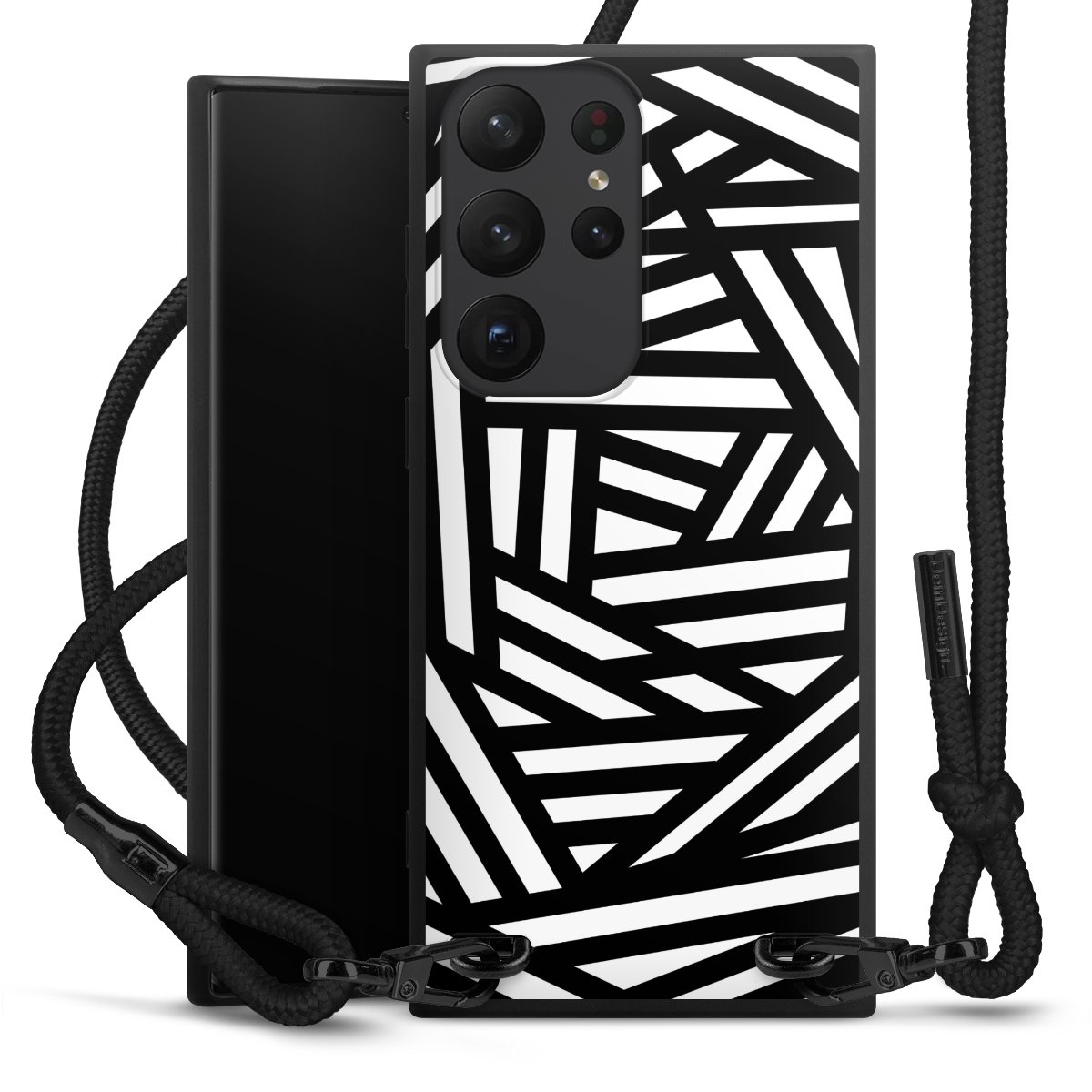 The matt black silicone case is made of flexible TPU (thermoplastic polyurethane) and offers robust protection. The durable, unbreakable material makes the cover flexible and dimensionally stable at the same time. The matte surface makes your design stand out more and is less susceptible to fingerprints and dirt. The stylish trend accessory fits comfortably in the hand and is perfectly complemented by the fabric (polyester) mobile phone strap. The braided fabric strap is approx. 1.70 metres long with a diameter of approx. 0.5 cm. Due to the special knotting technique, the length of the strap can be adjusted by simply pulling it, so that you can adapt it individually to your wishes. The practical case to wear around your neck is available with the fabric strap in black. As a little icing on the cake, we have provided the strap with a chic metal fastener in matt black. The strap is securely fastened to the case with loops made of high-quality genuine leather and press studs. The ends of the fabric strap are covered with metallic end caps and thus protected from fraying.
