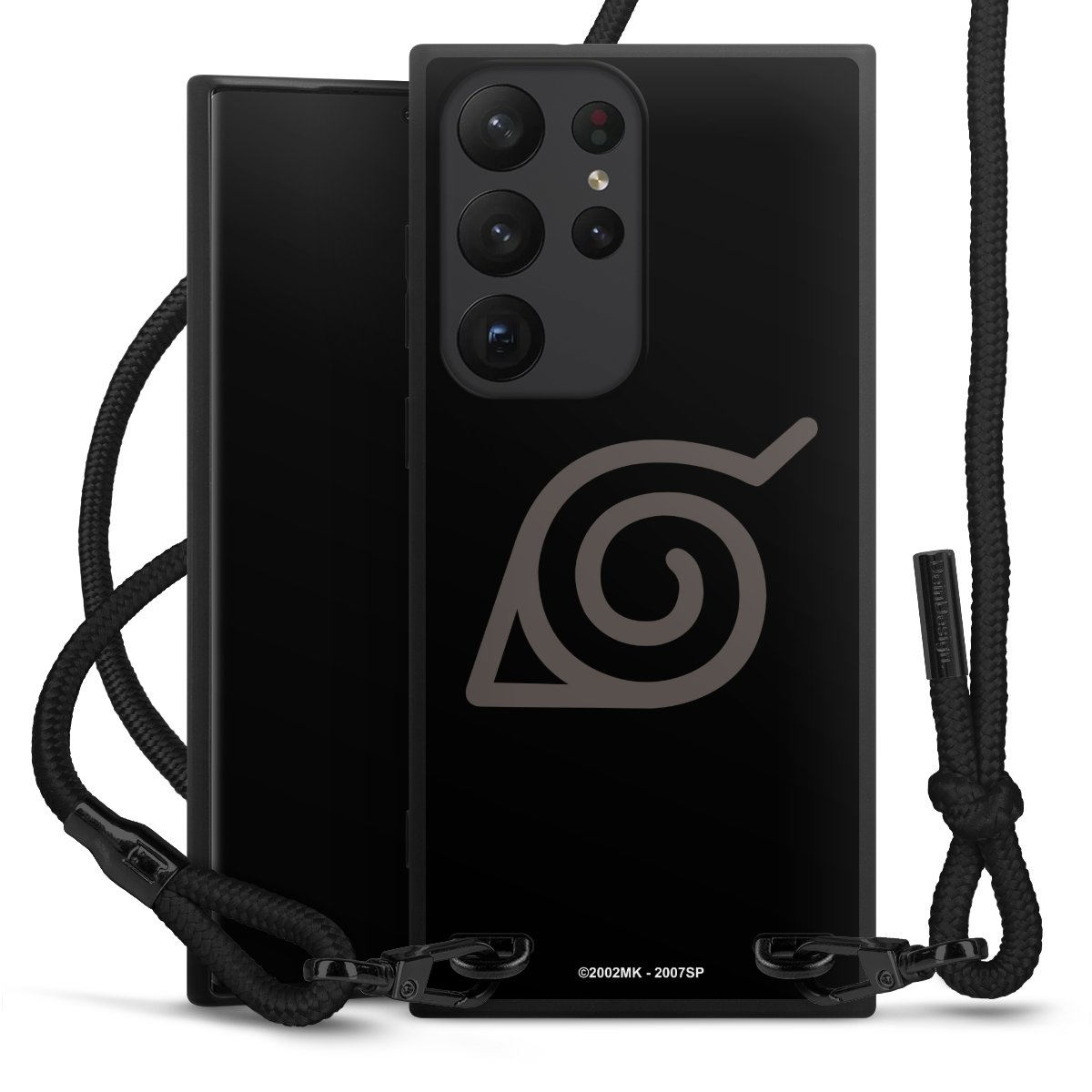 The matt black silicone case is made of flexible TPU (thermoplastic polyurethane) and offers robust protection. The durable, unbreakable material makes the cover flexible and dimensionally stable at the same time. The matte surface makes your design stand out more and is less susceptible to fingerprints and dirt. The stylish trend accessory fits comfortably in the hand and is perfectly complemented by the fabric (polyester) mobile phone strap. The braided fabric strap is approx. 1.70 metres long with a diameter of approx. 0.5 cm. Due to the special knotting technique, the length of the strap can be adjusted by simply pulling it, so that you can adapt it individually to your wishes. The practical case to wear around your neck is available with the fabric strap in black. As a little icing on the cake, we have provided the strap with a chic metal fastener in matt black. The strap is securely fastened to the case with loops made of high-quality genuine leather and press studs. The ends of the fabric strap are covered with metallic end caps and thus protected from fraying.