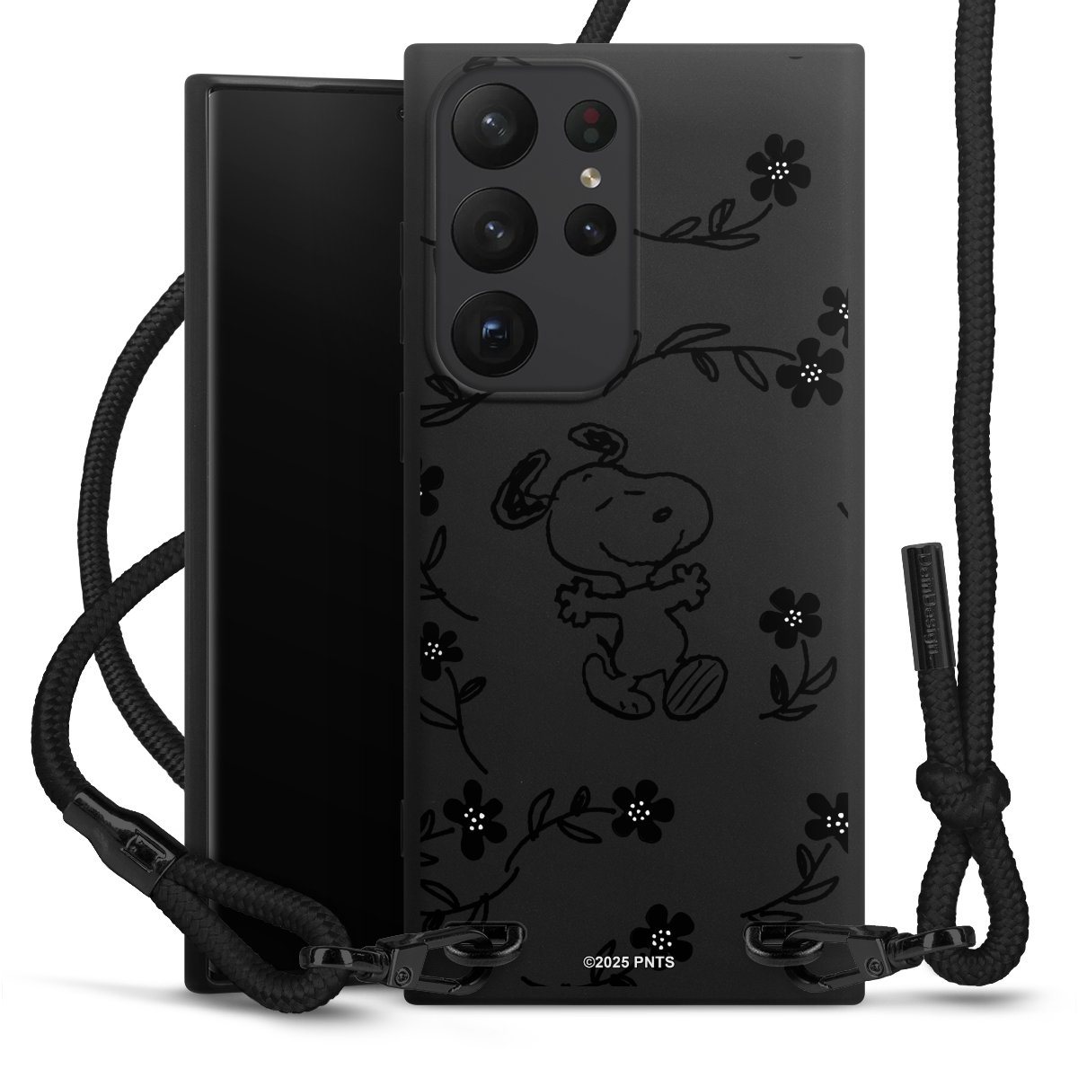 The matt black silicone case is made of flexible TPU (thermoplastic polyurethane) and offers robust protection. The durable, unbreakable material makes the cover flexible and dimensionally stable at the same time. The matte surface makes your design stand out more and is less susceptible to fingerprints and dirt. The stylish trend accessory fits comfortably in the hand and is perfectly complemented by the fabric (polyester) mobile phone strap. The braided fabric strap is approx. 1.70 metres long with a diameter of approx. 0.5 cm. Due to the special knotting technique, the length of the strap can be adjusted by simply pulling it, so that you can adapt it individually to your wishes. The practical case to wear around your neck is available with the fabric strap in black. As a little icing on the cake, we have provided the strap with a chic metal fastener in matt black. The strap is securely fastened to the case with loops made of high-quality genuine leather and press studs. The ends of the fabric strap are covered with metallic end caps and thus protected from fraying.