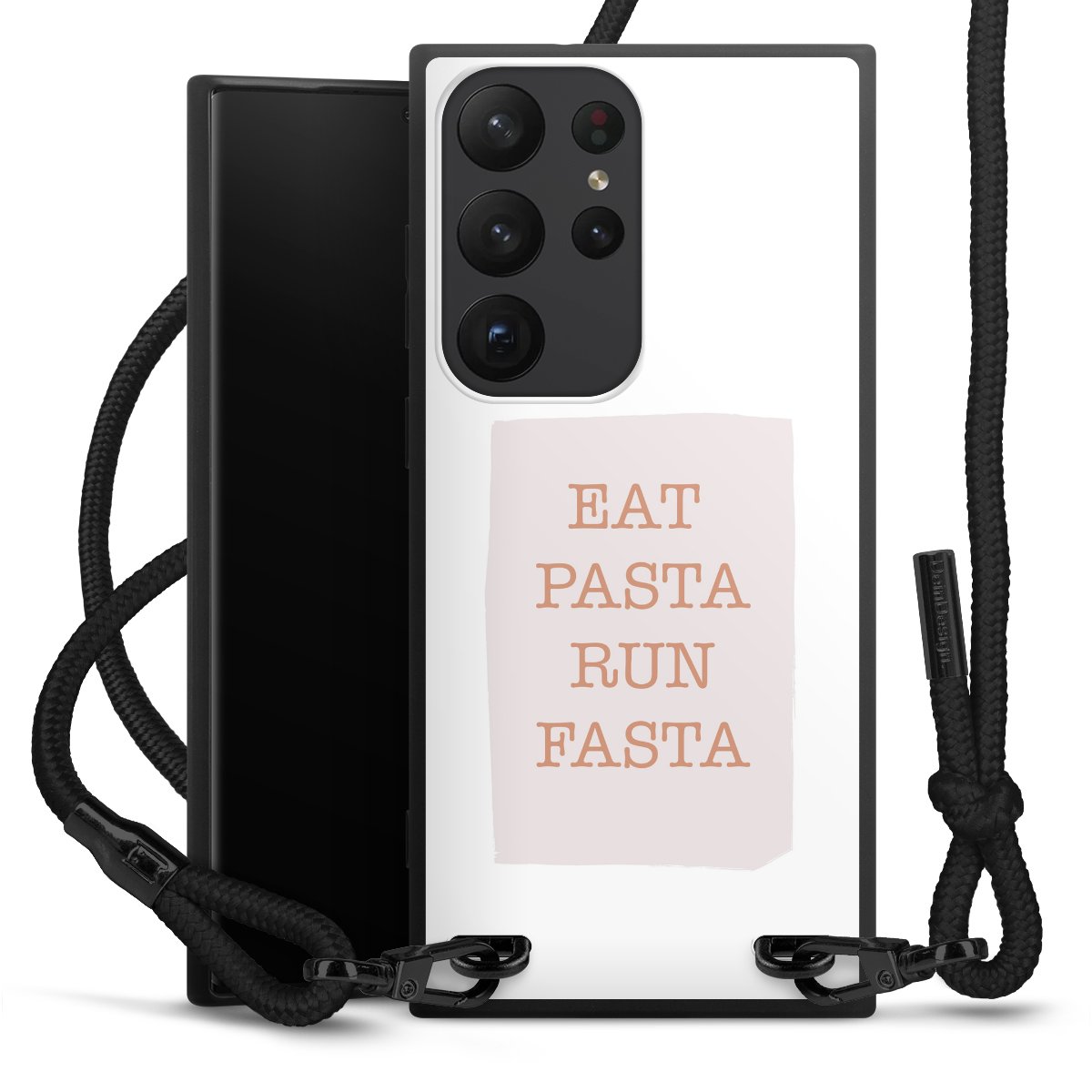 Pure Black: Phone case, fabric strap and metal details in stylish matt black.