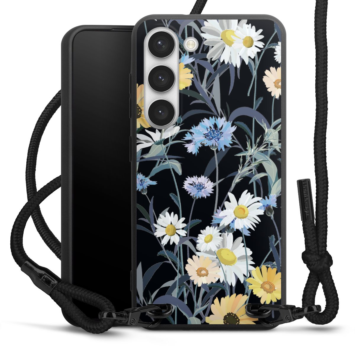 The matt black silicone case is made of flexible TPU (thermoplastic polyurethane) and offers robust protection. The durable, unbreakable material makes the cover flexible and dimensionally stable at the same time. The matte surface makes your design stand out more and is less susceptible to fingerprints and dirt. The stylish trend accessory fits comfortably in the hand and is perfectly complemented by the fabric (polyester) mobile phone strap. The braided fabric strap is approx. 1.70 metres long with a diameter of approx. 0.5 cm. Due to the special knotting technique, the length of the strap can be adjusted by simply pulling it, so that you can adapt it individually to your wishes. The practical case to wear around your neck is available with the fabric strap in black. As a little icing on the cake, we have provided the strap with a chic metal fastener in matt black. The strap is securely fastened to the case with loops made of high-quality genuine leather and press studs. The ends of the fabric strap are covered with metallic end caps and thus protected from fraying.