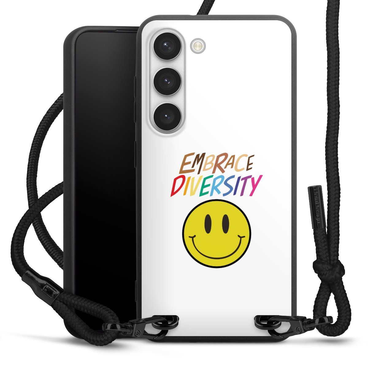 We use the solid direct print process for this phone case, which is why the print area only covers the back and the edge remains unprinted. The case to wear around your neck can be ordered unprinted, fully printed, or partially printed. For your design, either choose one of our exclusive shop motifs or get creative and create your own design, for example with photos and overlays. Design your own personal trend accessory and make an individual statement on the streets!