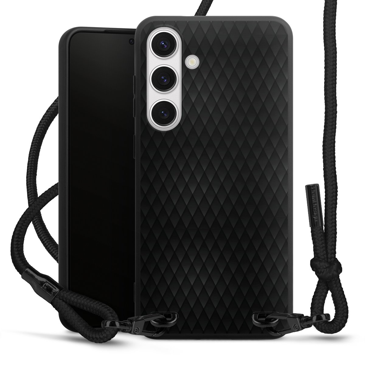 Pure Black: Phone case, fabric strap and metal details in stylish matt black.