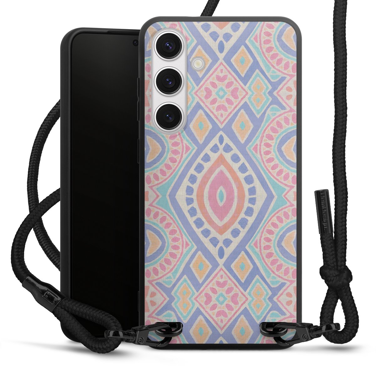 We use the solid direct print process for this phone case, which is why the print area only covers the back and the edge remains unprinted. The case to wear around your neck can be ordered unprinted, fully printed, or partially printed. For your design, either choose one of our exclusive shop motifs or get creative and create your own design, for example with photos and overlays. Design your own personal trend accessory and make an individual statement on the streets!
