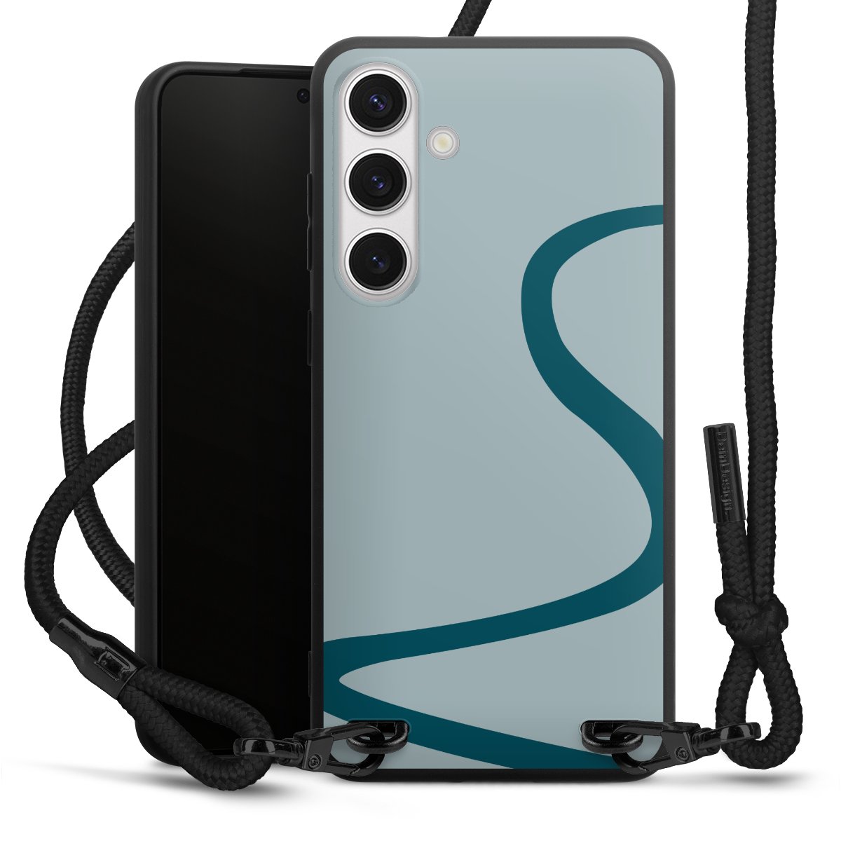 The matt black silicone case is made of flexible TPU (thermoplastic polyurethane) and offers robust protection. The durable, unbreakable material makes the cover flexible and dimensionally stable at the same time. The matte surface makes your design stand out more and is less susceptible to fingerprints and dirt. The stylish trend accessory fits comfortably in the hand and is perfectly complemented by the fabric (polyester) mobile phone strap. The braided fabric strap is approx. 1.70 metres long with a diameter of approx. 0.5 cm. Due to the special knotting technique, the length of the strap can be adjusted by simply pulling it, so that you can adapt it individually to your wishes. The practical case to wear around your neck is available with the fabric strap in black. As a little icing on the cake, we have provided the strap with a chic metal fastener in matt black. The strap is securely fastened to the case with loops made of high-quality genuine leather and press studs. The ends of the fabric strap are covered with metallic end caps and thus protected from fraying.