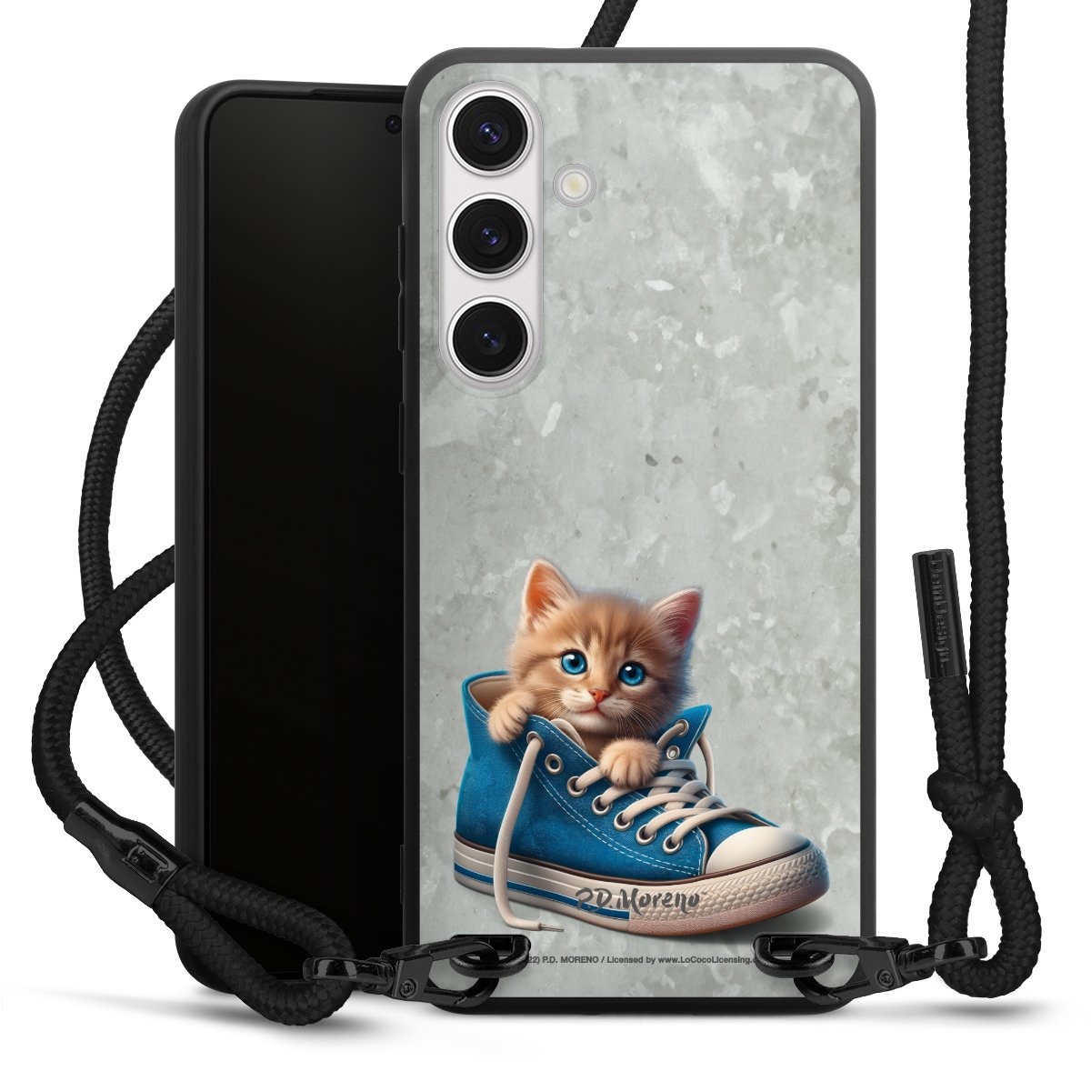 The matt black silicone case is made of flexible TPU (thermoplastic polyurethane) and offers robust protection. The durable, unbreakable material makes the cover flexible and dimensionally stable at the same time. The matte surface makes your design stand out more and is less susceptible to fingerprints and dirt. The stylish trend accessory fits comfortably in the hand and is perfectly complemented by the fabric (polyester) mobile phone strap. The braided fabric strap is approx. 1.70 metres long with a diameter of approx. 0.5 cm. Due to the special knotting technique, the length of the strap can be adjusted by simply pulling it, so that you can adapt it individually to your wishes. The practical case to wear around your neck is available with the fabric strap in black. As a little icing on the cake, we have provided the strap with a chic metal fastener in matt black. The strap is securely fastened to the case with loops made of high-quality genuine leather and press studs. The ends of the fabric strap are covered with metallic end caps and thus protected from fraying.