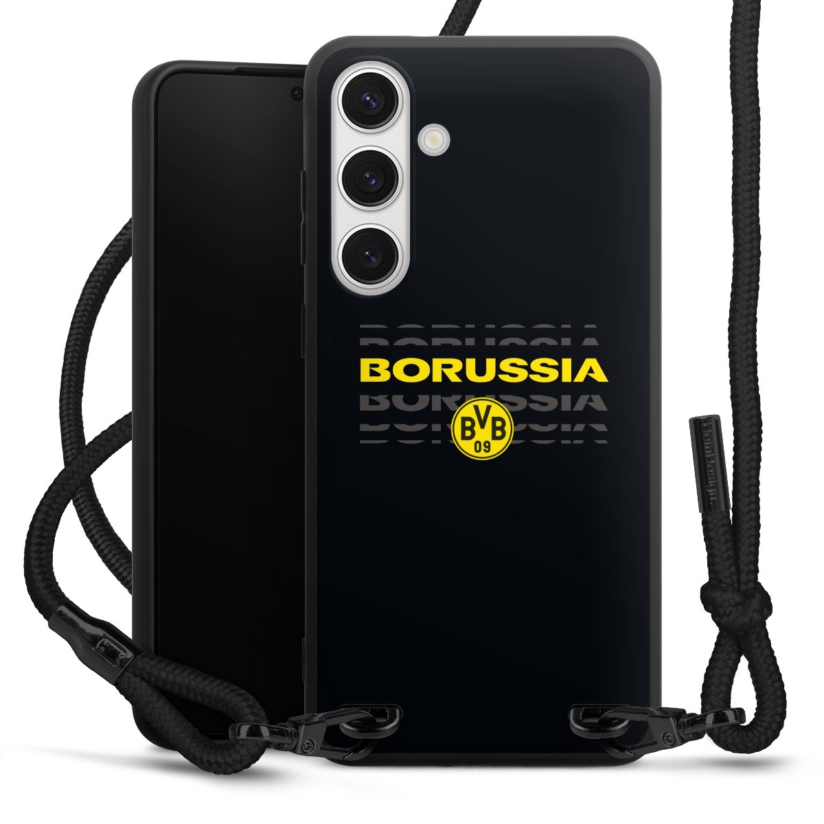 The matt black silicone case is made of flexible TPU (thermoplastic polyurethane) and offers robust protection. The durable, unbreakable material makes the cover flexible and dimensionally stable at the same time. The matte surface makes your design stand out more and is less susceptible to fingerprints and dirt. The stylish trend accessory fits comfortably in the hand and is perfectly complemented by the fabric (polyester) mobile phone strap. The braided fabric strap is approx. 1.70 metres long with a diameter of approx. 0.5 cm. Due to the special knotting technique, the length of the strap can be adjusted by simply pulling it, so that you can adapt it individually to your wishes. The practical case to wear around your neck is available with the fabric strap in black. As a little icing on the cake, we have provided the strap with a chic metal fastener in matt black. The strap is securely fastened to the case with loops made of high-quality genuine leather and press studs. The ends of the fabric strap are covered with metallic end caps and thus protected from fraying.