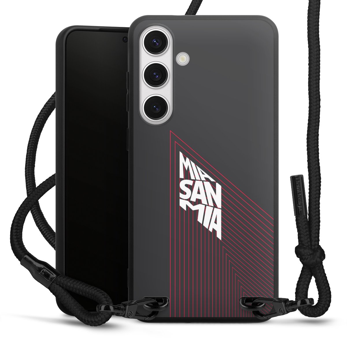 The matt black silicone case is made of flexible TPU (thermoplastic polyurethane) and offers robust protection. The durable, unbreakable material makes the cover flexible and dimensionally stable at the same time. The matte surface makes your design stand out more and is less susceptible to fingerprints and dirt. The stylish trend accessory fits comfortably in the hand and is perfectly complemented by the fabric (polyester) mobile phone strap. The braided fabric strap is approx. 1.70 metres long with a diameter of approx. 0.5 cm. Due to the special knotting technique, the length of the strap can be adjusted by simply pulling it, so that you can adapt it individually to your wishes. The practical case to wear around your neck is available with the fabric strap in black. As a little icing on the cake, we have provided the strap with a chic metal fastener in matt black. The strap is securely fastened to the case with loops made of high-quality genuine leather and press studs. The ends of the fabric strap are covered with metallic end caps and thus protected from fraying.