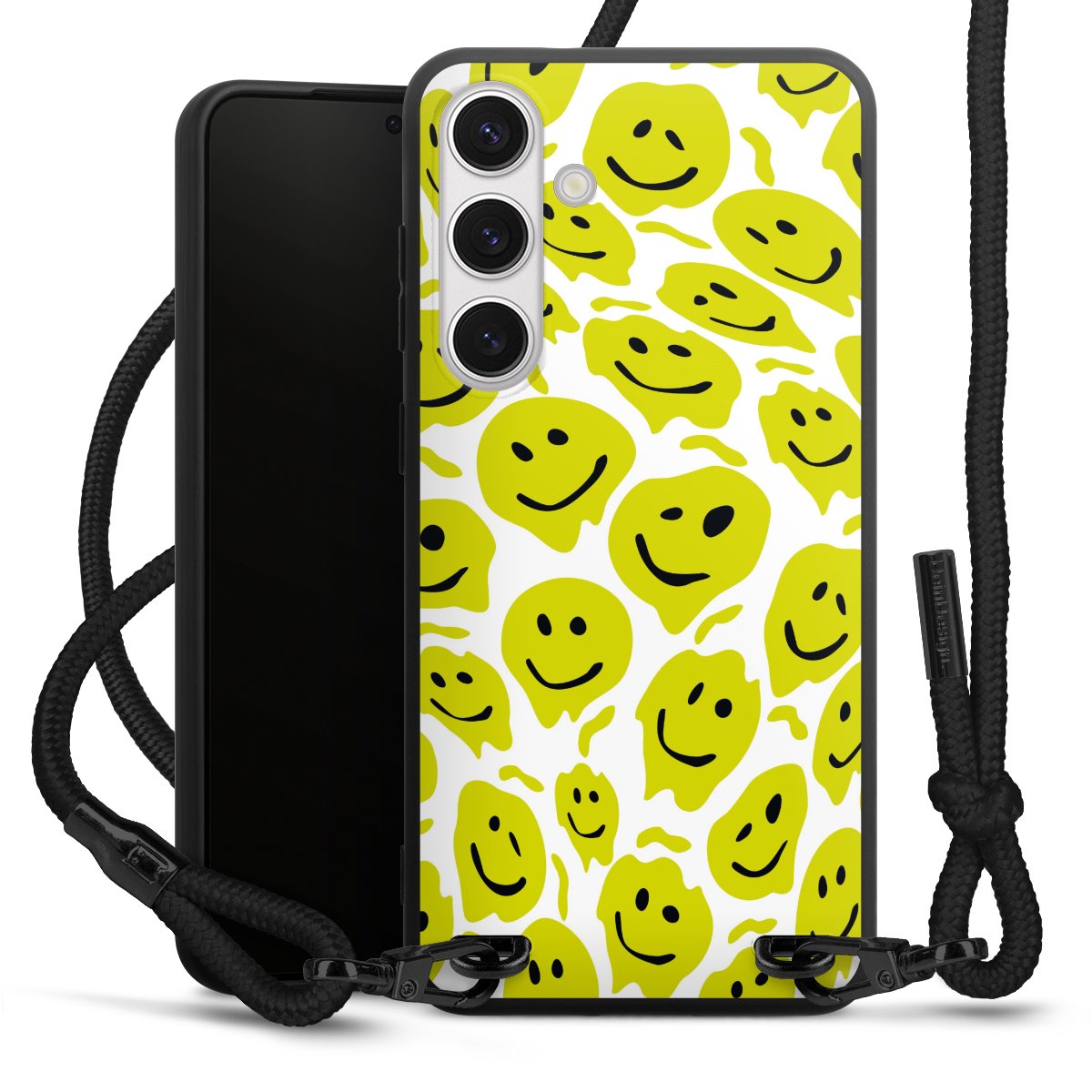 We use the solid direct print process for this phone case, which is why the print area only covers the back and the edge remains unprinted. The case to wear around your neck can be ordered unprinted, fully printed, or partially printed. For your design, either choose one of our exclusive shop motifs or get creative and create your own design, for example with photos and overlays. Design your own personal trend accessory and make an individual statement on the streets!