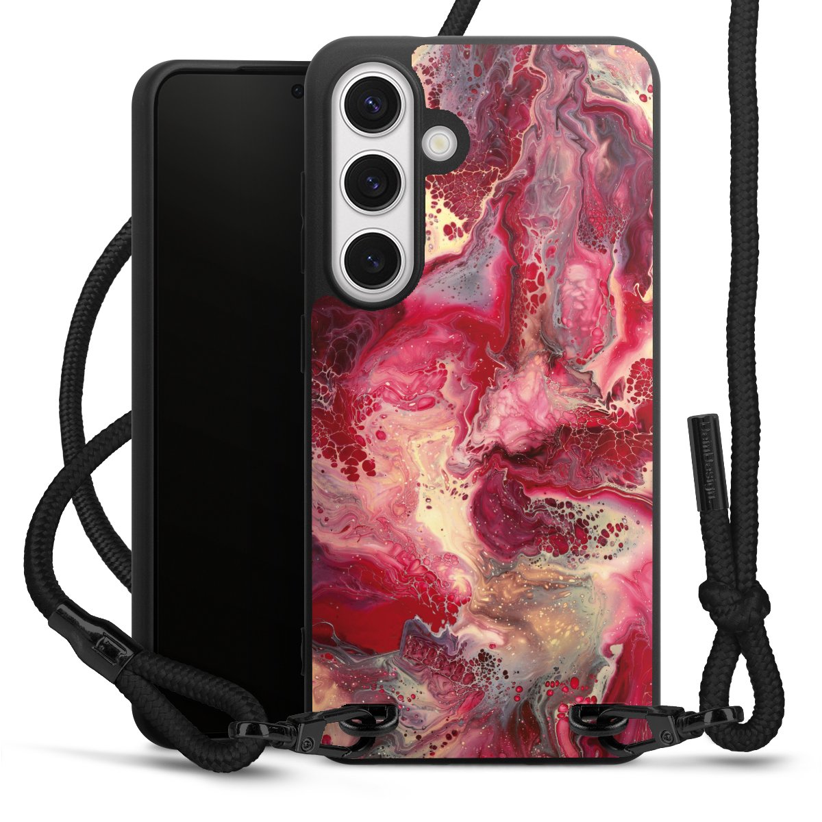We use the solid direct print process for this phone case, which is why the print area only covers the back and the edge remains unprinted. The case to wear around your neck can be ordered unprinted, fully printed, or partially printed. For your design, either choose one of our exclusive shop motifs or get creative and create your own design, for example with photos and overlays. Design your own personal trend accessory and make an individual statement on the streets!
