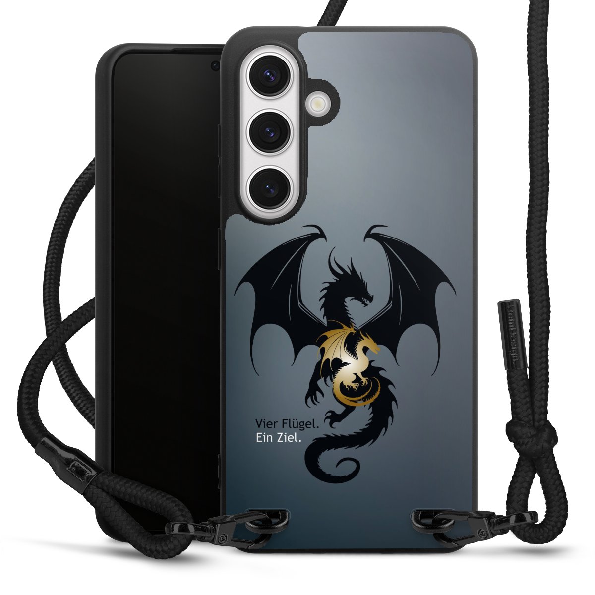 The matt black silicone case is made of flexible TPU (thermoplastic polyurethane) and offers robust protection. The durable, unbreakable material makes the cover flexible and dimensionally stable at the same time. The matte surface makes your design stand out more and is less susceptible to fingerprints and dirt. The stylish trend accessory fits comfortably in the hand and is perfectly complemented by the fabric (polyester) mobile phone strap. The braided fabric strap is approx. 1.70 metres long with a diameter of approx. 0.5 cm. Due to the special knotting technique, the length of the strap can be adjusted by simply pulling it, so that you can adapt it individually to your wishes. The practical case to wear around your neck is available with the fabric strap in black. As a little icing on the cake, we have provided the strap with a chic metal fastener in matt black. The strap is securely fastened to the case with loops made of high-quality genuine leather and press studs. The ends of the fabric strap are covered with metallic end caps and thus protected from fraying.