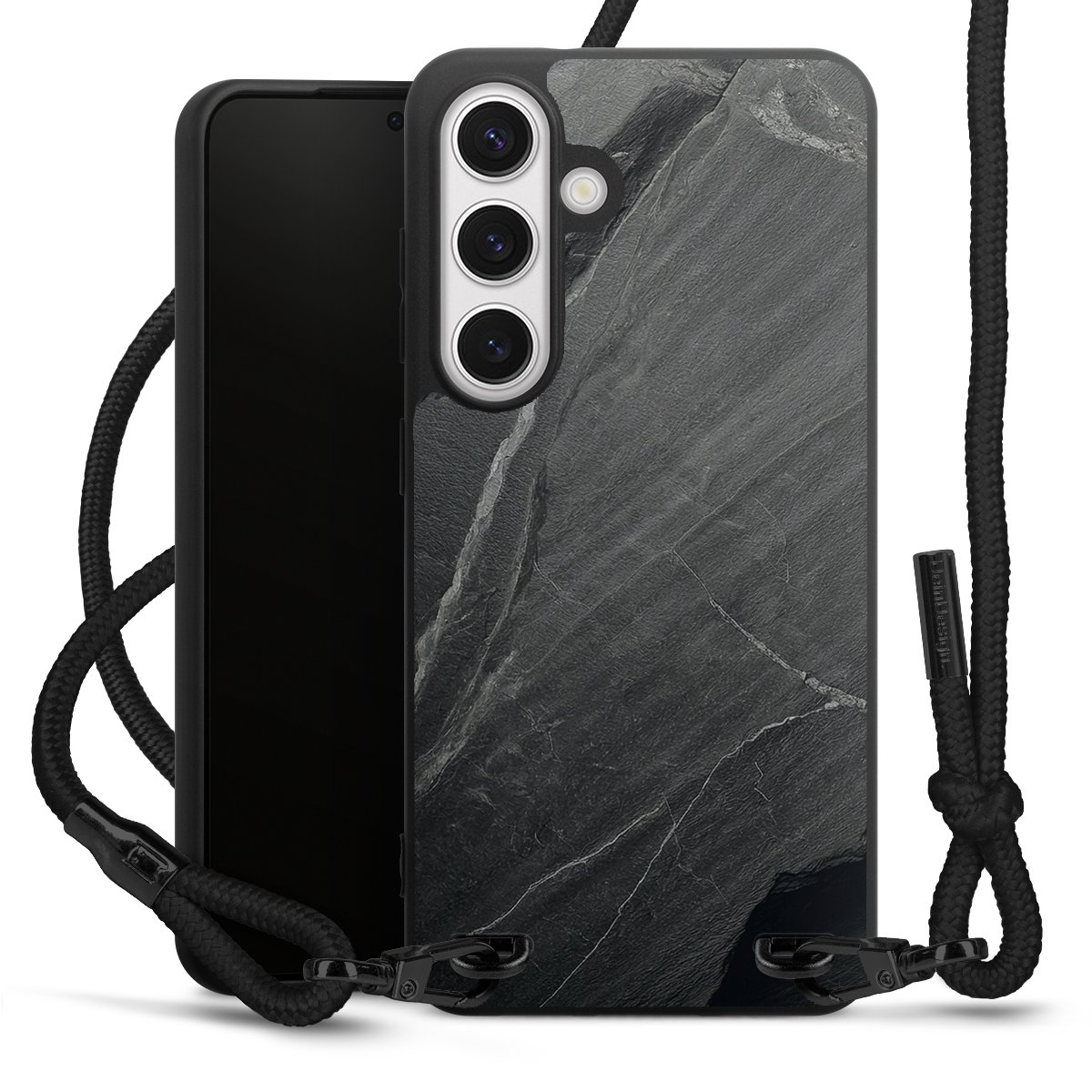 Pure Black: Phone case, fabric strap and metal details in stylish matt black.