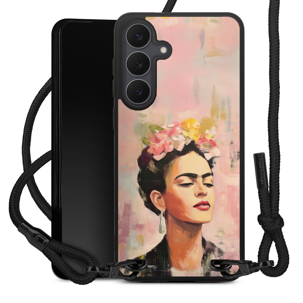The matt black silicone case is made of flexible TPU (thermoplastic polyurethane) and offers robust protection. The durable, unbreakable material makes the cover flexible and dimensionally stable at the same time. The matte surface makes your design stand out more and is less susceptible to fingerprints and dirt. The stylish trend accessory fits comfortably in the hand and is perfectly complemented by the fabric (polyester) mobile phone strap. The braided fabric strap is approx. 1.70 metres long with a diameter of approx. 0.5 cm. Due to the special knotting technique, the length of the strap can be adjusted by simply pulling it, so that you can adapt it individually to your wishes. The practical case to wear around your neck is available with the fabric strap in black. As a little icing on the cake, we have provided the strap with a chic metal fastener in matt black. The strap is securely fastened to the case with loops made of high-quality genuine leather and press studs. The ends of the fabric strap are covered with metallic end caps and thus protected from fraying.