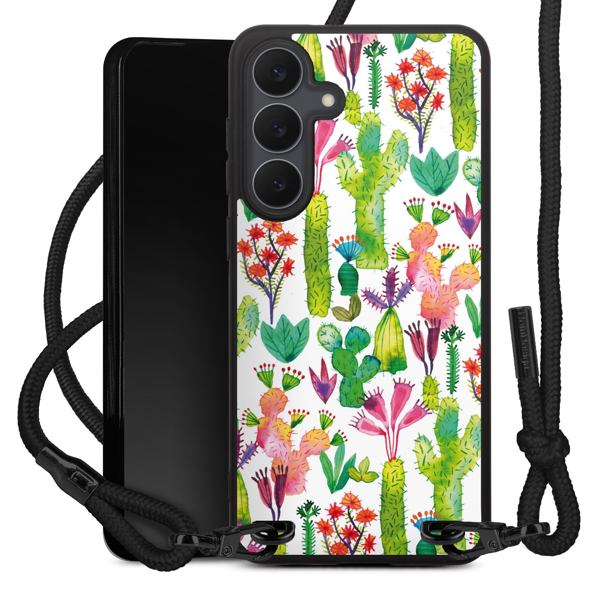 We use the solid direct print process for this phone case, which is why the print area only covers the back and the edge remains unprinted. The case to wear around your neck can be ordered unprinted, fully printed, or partially printed. For your design, either choose one of our exclusive shop motifs or get creative and create your own design, for example with photos and overlays. Design your own personal trend accessory and make an individual statement on the streets!