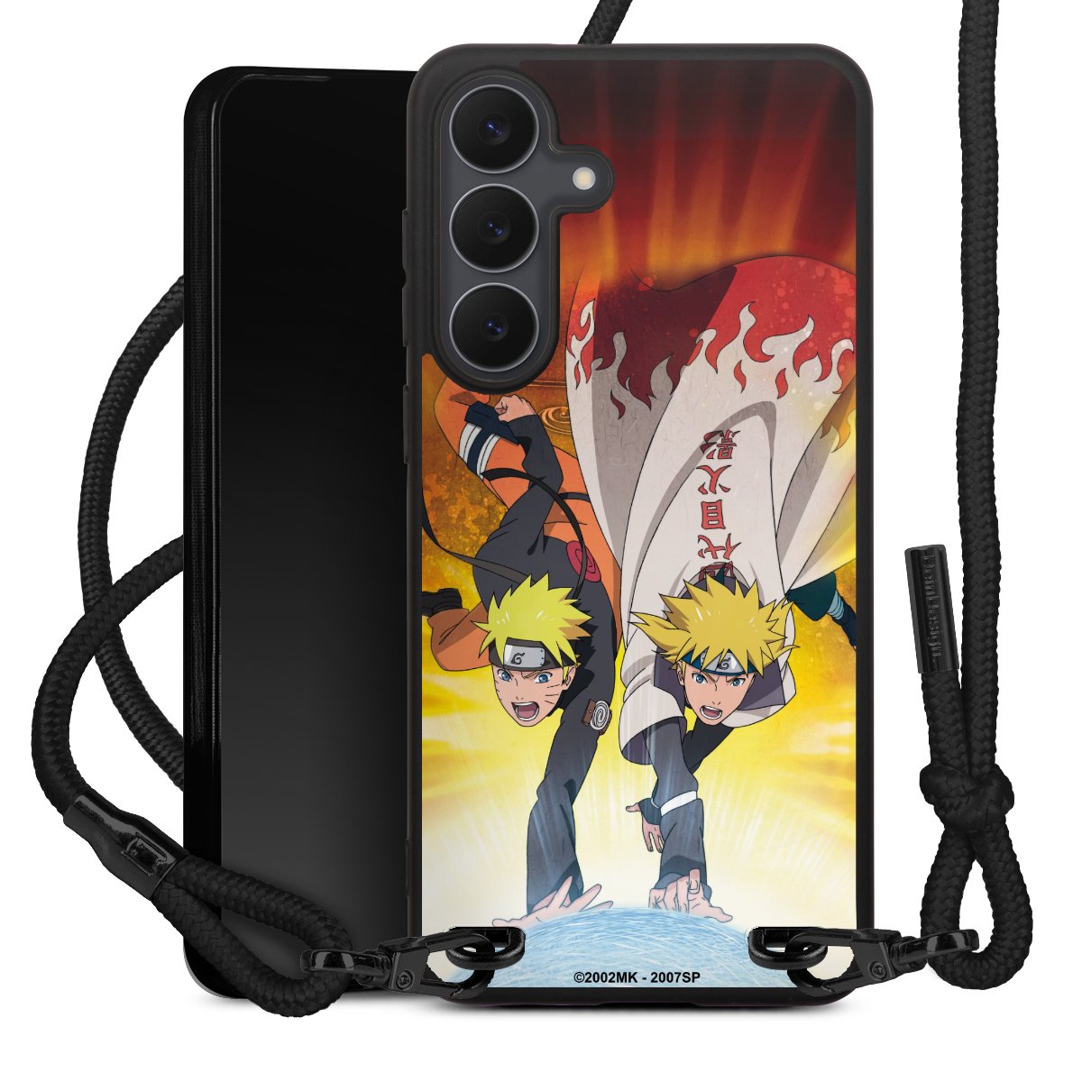The matt black silicone case is made of flexible TPU (thermoplastic polyurethane) and offers robust protection. The durable, unbreakable material makes the cover flexible and dimensionally stable at the same time. The matte surface makes your design stand out more and is less susceptible to fingerprints and dirt. The stylish trend accessory fits comfortably in the hand and is perfectly complemented by the fabric (polyester) mobile phone strap. The braided fabric strap is approx. 1.70 metres long with a diameter of approx. 0.5 cm. Due to the special knotting technique, the length of the strap can be adjusted by simply pulling it, so that you can adapt it individually to your wishes. The practical case to wear around your neck is available with the fabric strap in black. As a little icing on the cake, we have provided the strap with a chic metal fastener in matt black. The strap is securely fastened to the case with loops made of high-quality genuine leather and press studs. The ends of the fabric strap are covered with metallic end caps and thus protected from fraying.