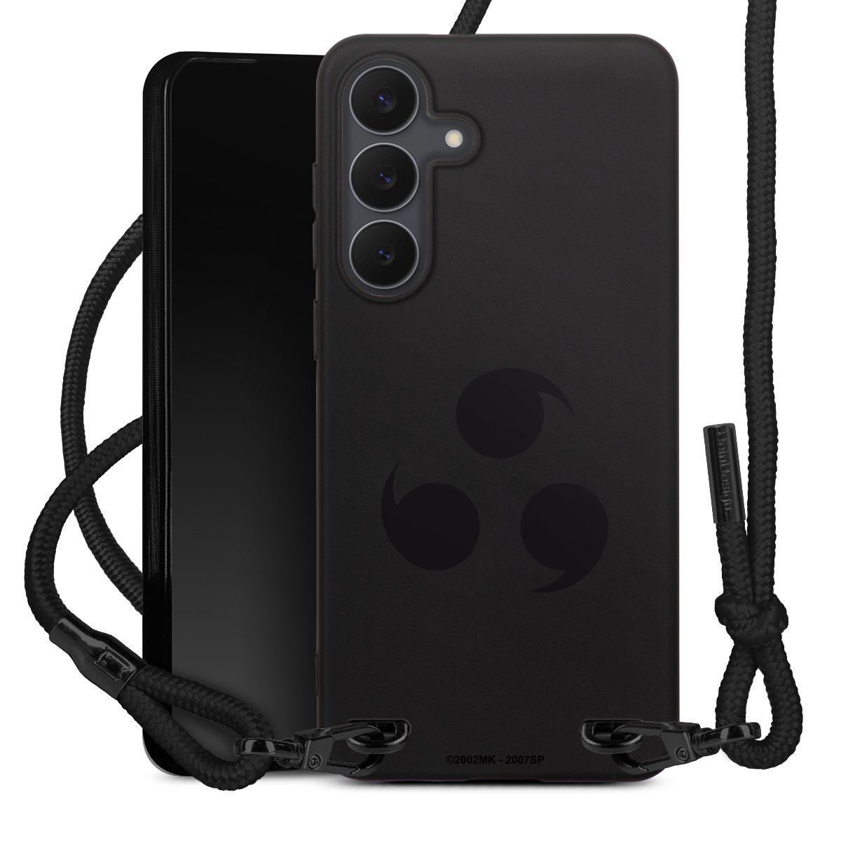 The matt black silicone case is made of flexible TPU (thermoplastic polyurethane) and offers robust protection. The durable, unbreakable material makes the cover flexible and dimensionally stable at the same time. The matte surface makes your design stand out more and is less susceptible to fingerprints and dirt. The stylish trend accessory fits comfortably in the hand and is perfectly complemented by the fabric (polyester) mobile phone strap. The braided fabric strap is approx. 1.70 metres long with a diameter of approx. 0.5 cm. Due to the special knotting technique, the length of the strap can be adjusted by simply pulling it, so that you can adapt it individually to your wishes. The practical case to wear around your neck is available with the fabric strap in black. As a little icing on the cake, we have provided the strap with a chic metal fastener in matt black. The strap is securely fastened to the case with loops made of high-quality genuine leather and press studs. The ends of the fabric strap are covered with metallic end caps and thus protected from fraying.