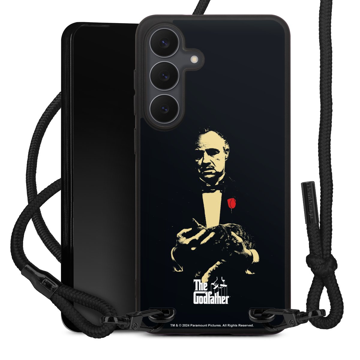 The matt black silicone case is made of flexible TPU (thermoplastic polyurethane) and offers robust protection. The durable, unbreakable material makes the cover flexible and dimensionally stable at the same time. The matte surface makes your design stand out more and is less susceptible to fingerprints and dirt. The stylish trend accessory fits comfortably in the hand and is perfectly complemented by the fabric (polyester) mobile phone strap. The braided fabric strap is approx. 1.70 metres long with a diameter of approx. 0.5 cm. Due to the special knotting technique, the length of the strap can be adjusted by simply pulling it, so that you can adapt it individually to your wishes. The practical case to wear around your neck is available with the fabric strap in black. As a little icing on the cake, we have provided the strap with a chic metal fastener in matt black. The strap is securely fastened to the case with loops made of high-quality genuine leather and press studs. The ends of the fabric strap are covered with metallic end caps and thus protected from fraying.