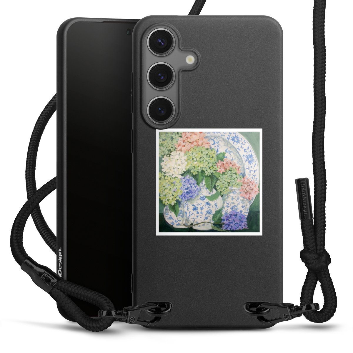 The matt black silicone case is made of flexible TPU (thermoplastic polyurethane) and offers robust protection. The durable, unbreakable material makes the cover flexible and dimensionally stable at the same time. The matte surface makes your design stand out more and is less susceptible to fingerprints and dirt. The stylish trend accessory fits comfortably in the hand and is perfectly complemented by the fabric (polyester) mobile phone strap. The braided fabric strap is approx. 1.70 metres long with a diameter of approx. 0.5 cm. Due to the special knotting technique, the length of the strap can be adjusted by simply pulling it, so that you can adapt it individually to your wishes. The practical case to wear around your neck is available with the fabric strap in black. As a little icing on the cake, we have provided the strap with a chic metal fastener in matt black. The strap is securely fastened to the case with loops made of high-quality genuine leather and press studs. The ends of the fabric strap are covered with metallic end caps and thus protected from fraying.