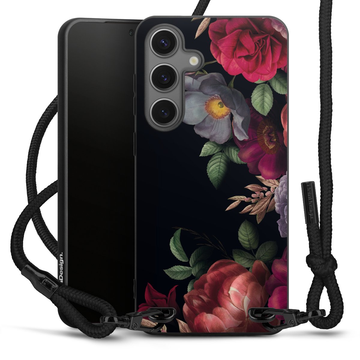 The matt black silicone case is made of flexible TPU (thermoplastic polyurethane) and offers robust protection. The durable, unbreakable material makes the cover flexible and dimensionally stable at the same time. The matte surface makes your design stand out more and is less susceptible to fingerprints and dirt. The stylish trend accessory fits comfortably in the hand and is perfectly complemented by the fabric (polyester) mobile phone strap. The braided fabric strap is approx. 1.70 metres long with a diameter of approx. 0.5 cm. Due to the special knotting technique, the length of the strap can be adjusted by simply pulling it, so that you can adapt it individually to your wishes. The practical case to wear around your neck is available with the fabric strap in black. As a little icing on the cake, we have provided the strap with a chic metal fastener in matt black. The strap is securely fastened to the case with loops made of high-quality genuine leather and press studs. The ends of the fabric strap are covered with metallic end caps and thus protected from fraying.
