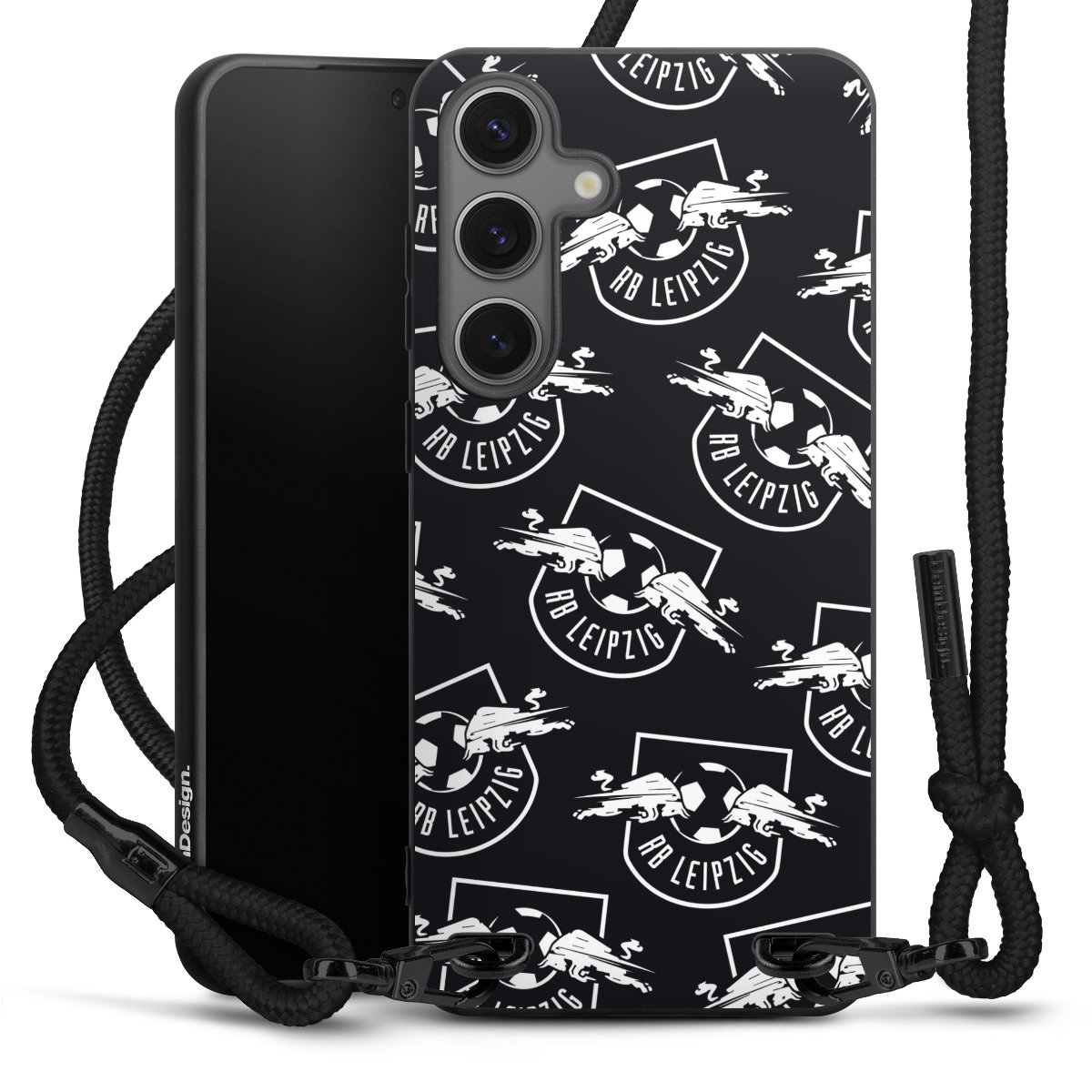 The matt black silicone case is made of flexible TPU (thermoplastic polyurethane) and offers robust protection. The durable, unbreakable material makes the cover flexible and dimensionally stable at the same time. The matte surface makes your design stand out more and is less susceptible to fingerprints and dirt. The stylish trend accessory fits comfortably in the hand and is perfectly complemented by the fabric (polyester) mobile phone strap. The braided fabric strap is approx. 1.70 metres long with a diameter of approx. 0.5 cm. Due to the special knotting technique, the length of the strap can be adjusted by simply pulling it, so that you can adapt it individually to your wishes. The practical case to wear around your neck is available with the fabric strap in black. As a little icing on the cake, we have provided the strap with a chic metal fastener in matt black. The strap is securely fastened to the case with loops made of high-quality genuine leather and press studs. The ends of the fabric strap are covered with metallic end caps and thus protected from fraying.