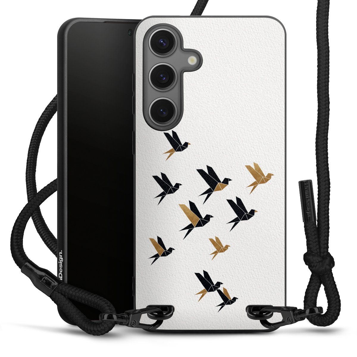 The matt black silicone case is made of flexible TPU (thermoplastic polyurethane) and offers robust protection. The durable, unbreakable material makes the cover flexible and dimensionally stable at the same time. The matte surface makes your design stand out more and is less susceptible to fingerprints and dirt. The stylish trend accessory fits comfortably in the hand and is perfectly complemented by the fabric (polyester) mobile phone strap. The braided fabric strap is approx. 1.70 metres long with a diameter of approx. 0.5 cm. Due to the special knotting technique, the length of the strap can be adjusted by simply pulling it, so that you can adapt it individually to your wishes. The practical case to wear around your neck is available with the fabric strap in black. As a little icing on the cake, we have provided the strap with a chic metal fastener in matt black. The strap is securely fastened to the case with loops made of high-quality genuine leather and press studs. The ends of the fabric strap are covered with metallic end caps and thus protected from fraying.