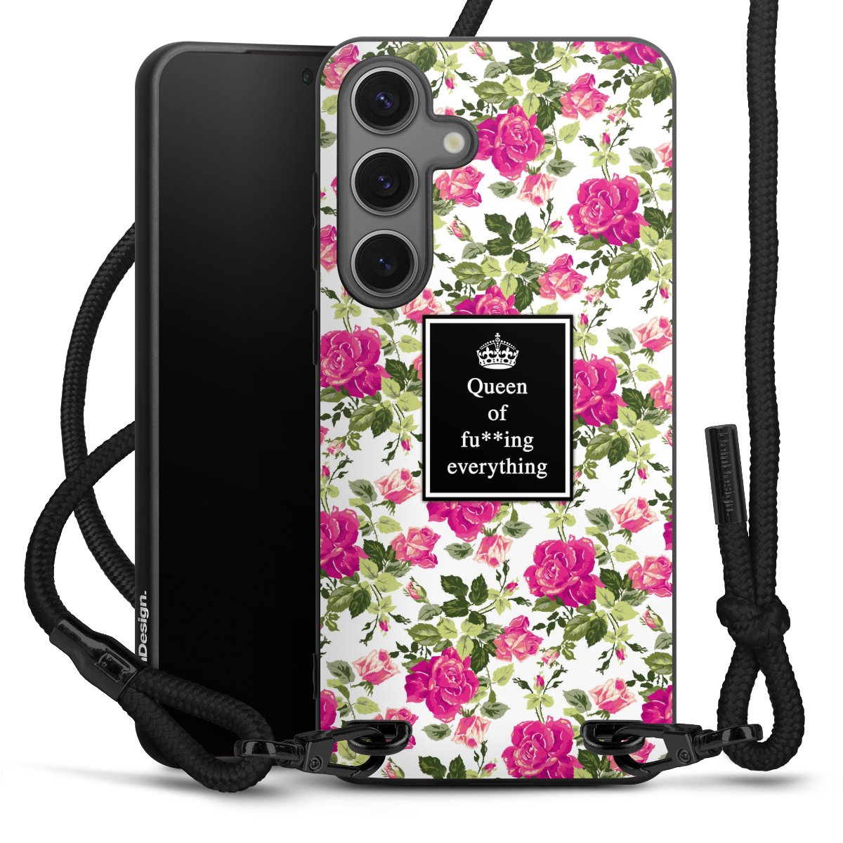 We use the solid direct print process for this phone case, which is why the print area only covers the back and the edge remains unprinted. The case to wear around your neck can be ordered unprinted, fully printed, or partially printed. For your design, either choose one of our exclusive shop motifs or get creative and create your own design, for example with photos and overlays. Design your own personal trend accessory and make an individual statement on the streets!