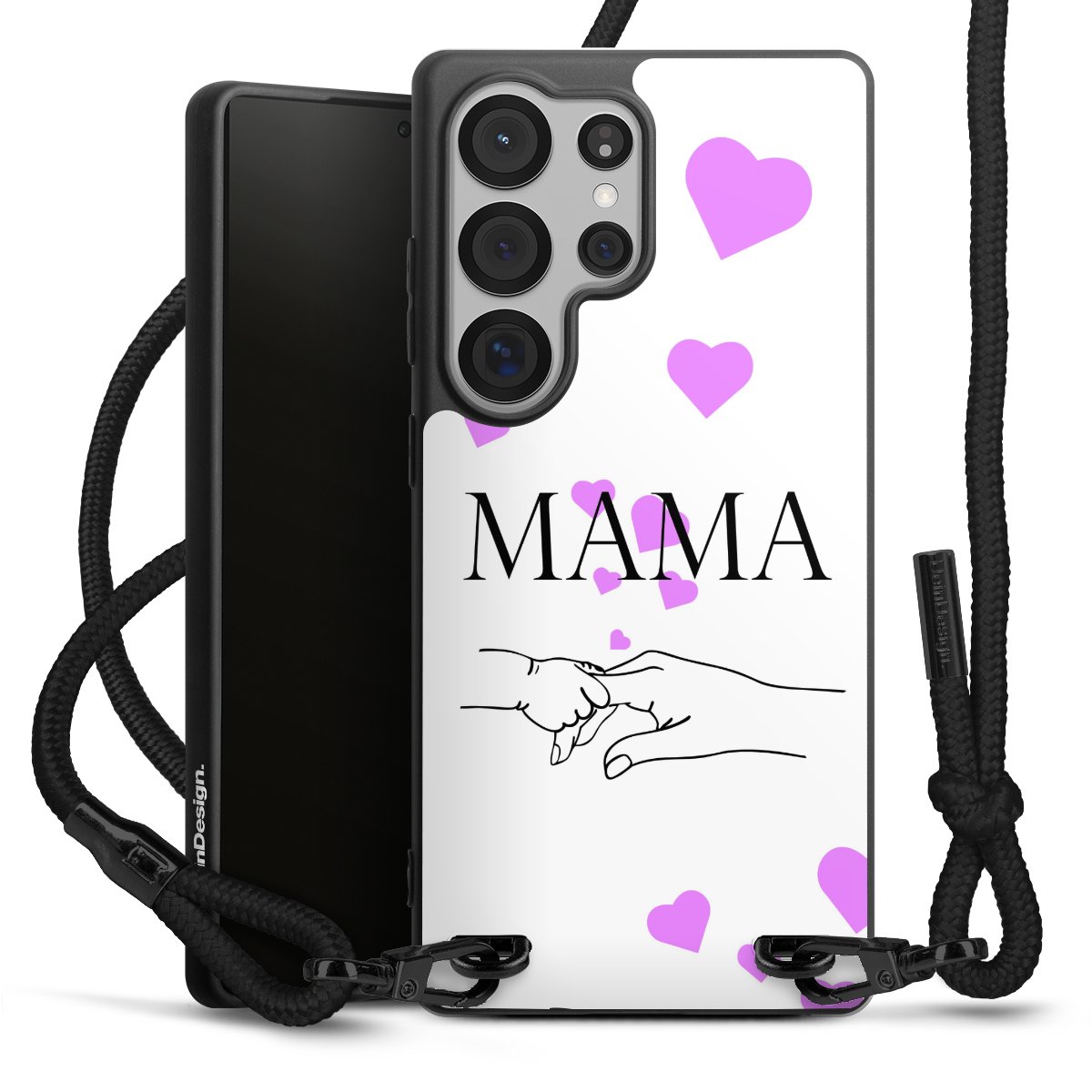 The matt black silicone case is made of flexible TPU (thermoplastic polyurethane) and offers robust protection. The durable, unbreakable material makes the cover flexible and dimensionally stable at the same time. The matte surface makes your design stand out more and is less susceptible to fingerprints and dirt. The stylish trend accessory fits comfortably in the hand and is perfectly complemented by the fabric (polyester) mobile phone strap. The braided fabric strap is approx. 1.70 metres long with a diameter of approx. 0.5 cm. Due to the special knotting technique, the length of the strap can be adjusted by simply pulling it, so that you can adapt it individually to your wishes. The practical case to wear around your neck is available with the fabric strap in black. As a little icing on the cake, we have provided the strap with a chic metal fastener in matt black. The strap is securely fastened to the case with loops made of high-quality genuine leather and press studs. The ends of the fabric strap are covered with metallic end caps and thus protected from fraying.
