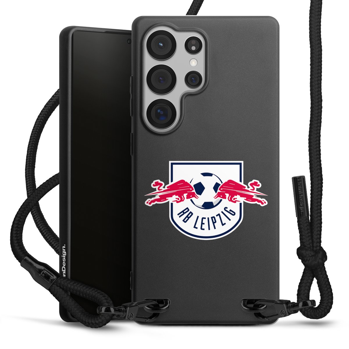 The matt black silicone case is made of flexible TPU (thermoplastic polyurethane) and offers robust protection. The durable, unbreakable material makes the cover flexible and dimensionally stable at the same time. The matte surface makes your design stand out more and is less susceptible to fingerprints and dirt. The stylish trend accessory fits comfortably in the hand and is perfectly complemented by the fabric (polyester) mobile phone strap. The braided fabric strap is approx. 1.70 metres long with a diameter of approx. 0.5 cm. Due to the special knotting technique, the length of the strap can be adjusted by simply pulling it, so that you can adapt it individually to your wishes. The practical case to wear around your neck is available with the fabric strap in black. As a little icing on the cake, we have provided the strap with a chic metal fastener in matt black. The strap is securely fastened to the case with loops made of high-quality genuine leather and press studs. The ends of the fabric strap are covered with metallic end caps and thus protected from fraying.