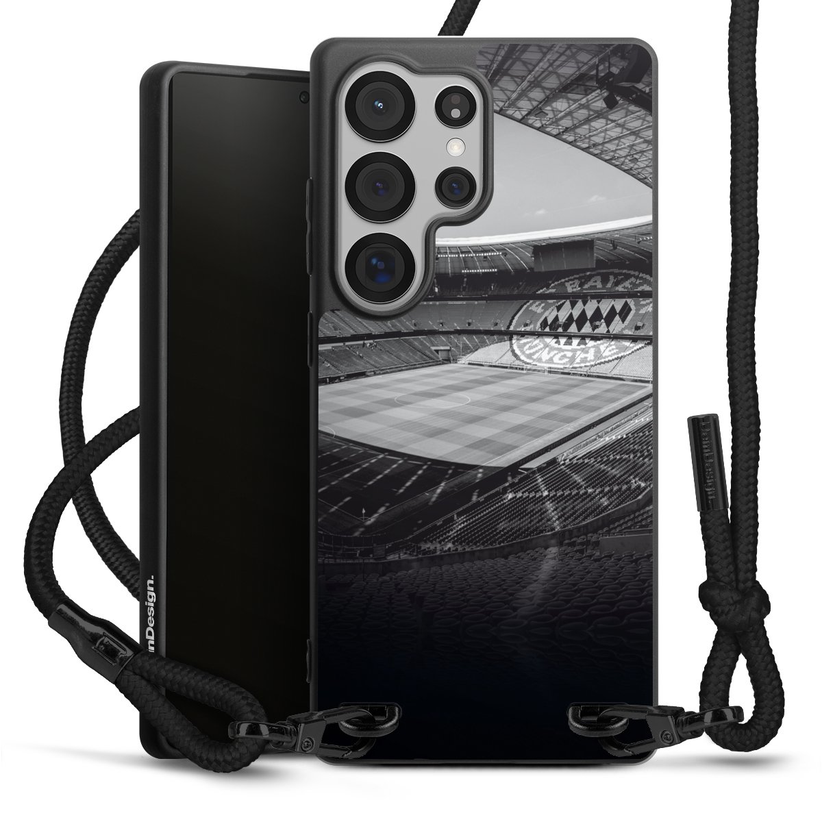 The matt black silicone case is made of flexible TPU (thermoplastic polyurethane) and offers robust protection. The durable, unbreakable material makes the cover flexible and dimensionally stable at the same time. The matte surface makes your design stand out more and is less susceptible to fingerprints and dirt. The stylish trend accessory fits comfortably in the hand and is perfectly complemented by the fabric (polyester) mobile phone strap. The braided fabric strap is approx. 1.70 metres long with a diameter of approx. 0.5 cm. Due to the special knotting technique, the length of the strap can be adjusted by simply pulling it, so that you can adapt it individually to your wishes. The practical case to wear around your neck is available with the fabric strap in black. As a little icing on the cake, we have provided the strap with a chic metal fastener in matt black. The strap is securely fastened to the case with loops made of high-quality genuine leather and press studs. The ends of the fabric strap are covered with metallic end caps and thus protected from fraying.