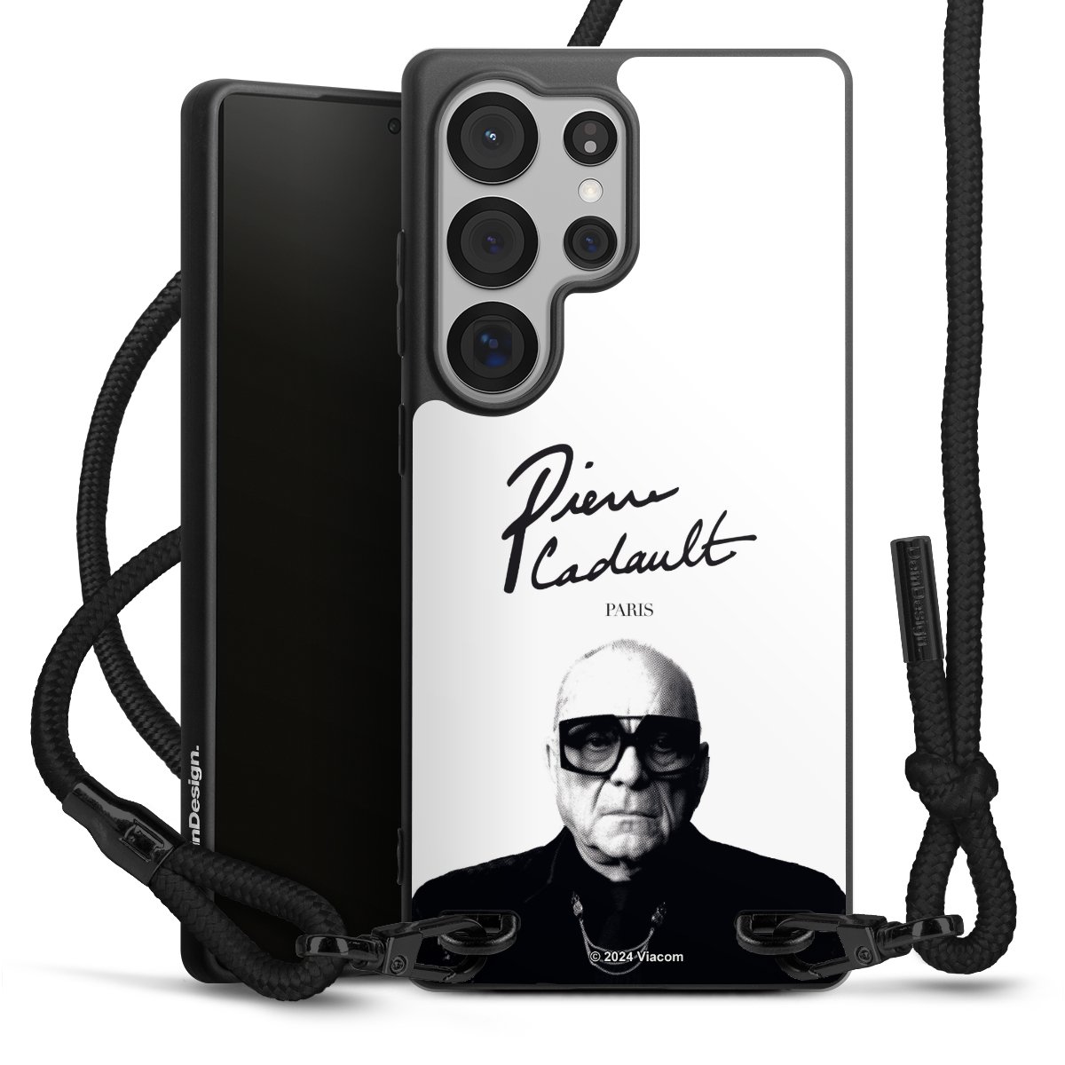The matt black silicone case is made of flexible TPU (thermoplastic polyurethane) and offers robust protection. The durable, unbreakable material makes the cover flexible and dimensionally stable at the same time. The matte surface makes your design stand out more and is less susceptible to fingerprints and dirt. The stylish trend accessory fits comfortably in the hand and is perfectly complemented by the fabric (polyester) mobile phone strap. The braided fabric strap is approx. 1.70 metres long with a diameter of approx. 0.5 cm. Due to the special knotting technique, the length of the strap can be adjusted by simply pulling it, so that you can adapt it individually to your wishes. The practical case to wear around your neck is available with the fabric strap in black. As a little icing on the cake, we have provided the strap with a chic metal fastener in matt black. The strap is securely fastened to the case with loops made of high-quality genuine leather and press studs. The ends of the fabric strap are covered with metallic end caps and thus protected from fraying.