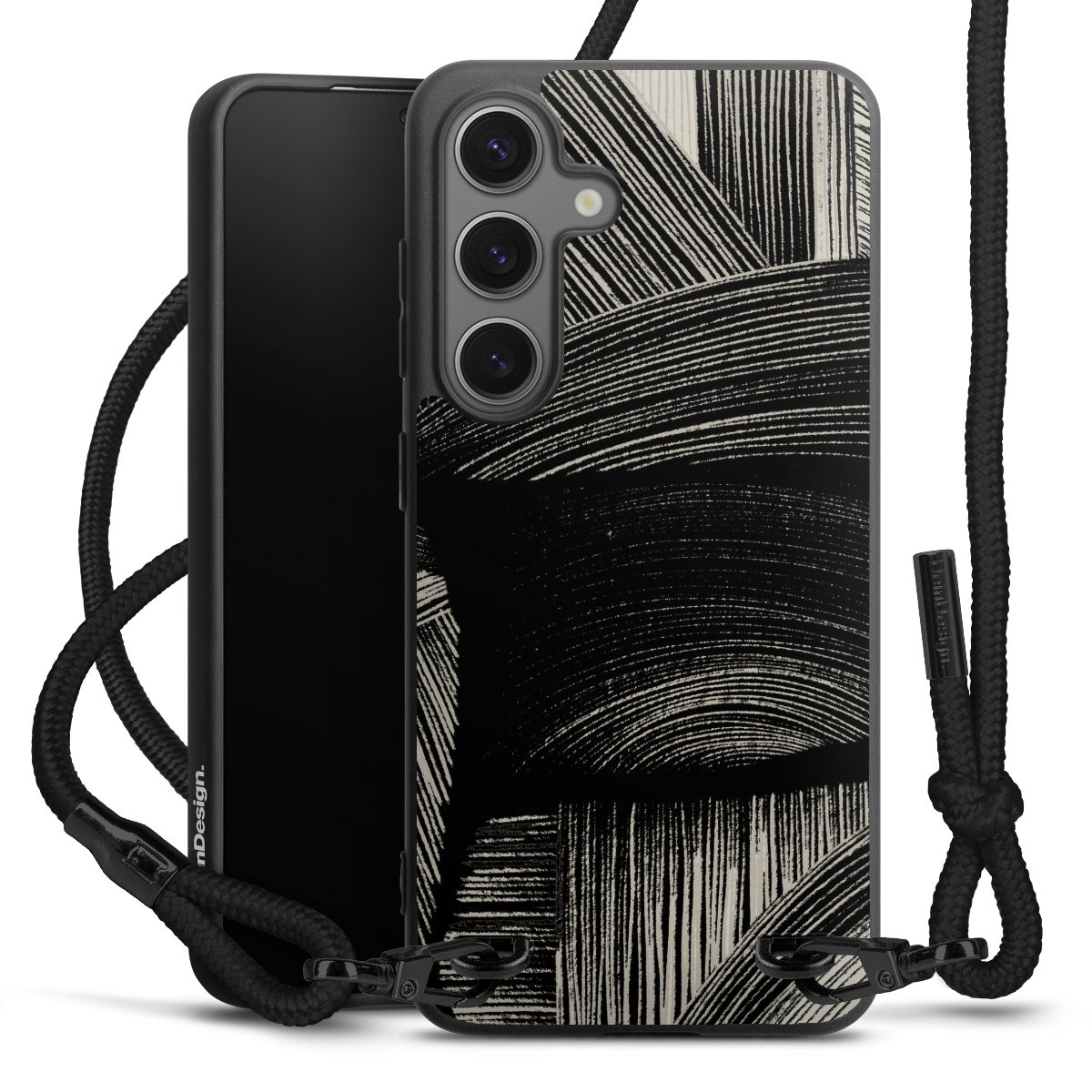 Pure Black: Phone case, fabric strap and metal details in stylish matt black.