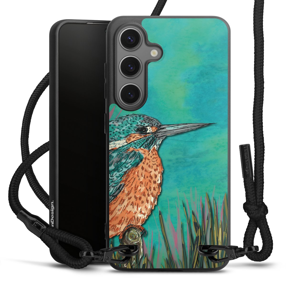 The matt black silicone case is made of flexible TPU (thermoplastic polyurethane) and offers robust protection. The durable, unbreakable material makes the cover flexible and dimensionally stable at the same time. The matte surface makes your design stand out more and is less susceptible to fingerprints and dirt. The stylish trend accessory fits comfortably in the hand and is perfectly complemented by the fabric (polyester) mobile phone strap. The braided fabric strap is approx. 1.70 metres long with a diameter of approx. 0.5 cm. Due to the special knotting technique, the length of the strap can be adjusted by simply pulling it, so that you can adapt it individually to your wishes. The practical case to wear around your neck is available with the fabric strap in black. As a little icing on the cake, we have provided the strap with a chic metal fastener in matt black. The strap is securely fastened to the case with loops made of high-quality genuine leather and press studs. The ends of the fabric strap are covered with metallic end caps and thus protected from fraying.