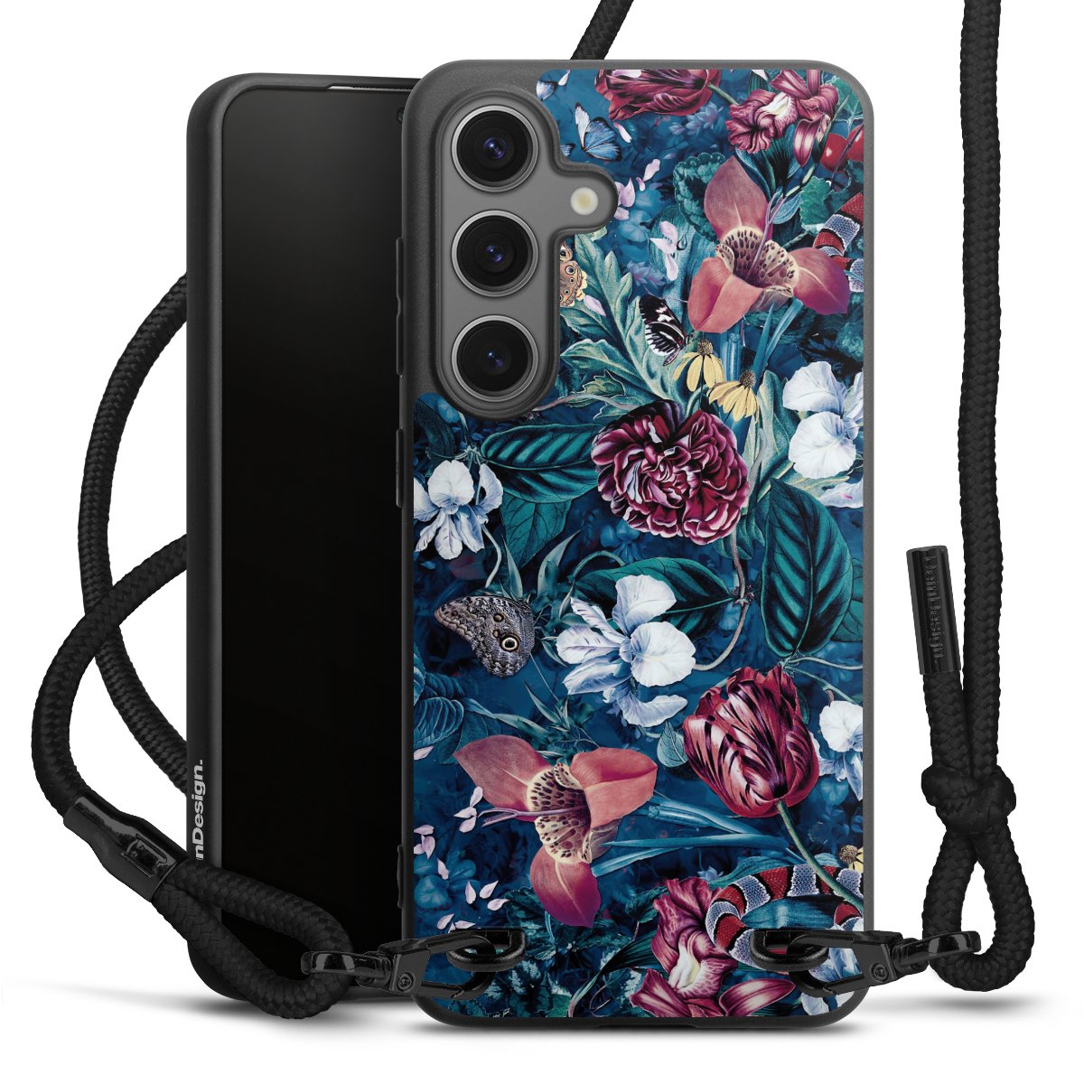 The matt black silicone case is made of flexible TPU (thermoplastic polyurethane) and offers robust protection. The durable, unbreakable material makes the cover flexible and dimensionally stable at the same time. The matte surface makes your design stand out more and is less susceptible to fingerprints and dirt. The stylish trend accessory fits comfortably in the hand and is perfectly complemented by the fabric (polyester) mobile phone strap. The braided fabric strap is approx. 1.70 metres long with a diameter of approx. 0.5 cm. Due to the special knotting technique, the length of the strap can be adjusted by simply pulling it, so that you can adapt it individually to your wishes. The practical case to wear around your neck is available with the fabric strap in black. As a little icing on the cake, we have provided the strap with a chic metal fastener in matt black. The strap is securely fastened to the case with loops made of high-quality genuine leather and press studs. The ends of the fabric strap are covered with metallic end caps and thus protected from fraying.