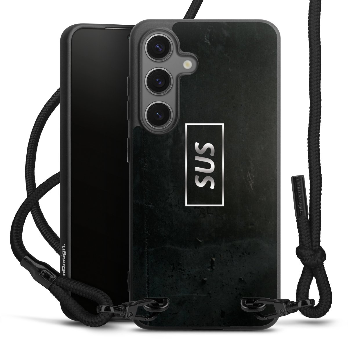 The matt black silicone case is made of flexible TPU (thermoplastic polyurethane) and offers robust protection. The durable, unbreakable material makes the cover flexible and dimensionally stable at the same time. The matte surface makes your design stand out more and is less susceptible to fingerprints and dirt. The stylish trend accessory fits comfortably in the hand and is perfectly complemented by the fabric (polyester) mobile phone strap. The braided fabric strap is approx. 1.70 metres long with a diameter of approx. 0.5 cm. Due to the special knotting technique, the length of the strap can be adjusted by simply pulling it, so that you can adapt it individually to your wishes. The practical case to wear around your neck is available with the fabric strap in black. As a little icing on the cake, we have provided the strap with a chic metal fastener in matt black. The strap is securely fastened to the case with loops made of high-quality genuine leather and press studs. The ends of the fabric strap are covered with metallic end caps and thus protected from fraying.