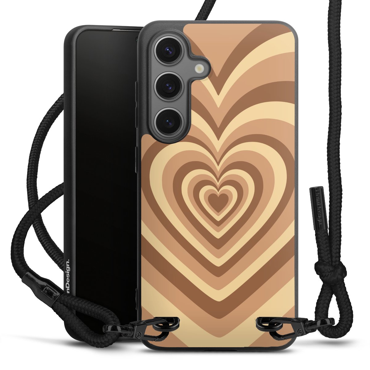 The matt black silicone case is made of flexible TPU (thermoplastic polyurethane) and offers robust protection. The durable, unbreakable material makes the cover flexible and dimensionally stable at the same time. The matte surface makes your design stand out more and is less susceptible to fingerprints and dirt. The stylish trend accessory fits comfortably in the hand and is perfectly complemented by the fabric (polyester) mobile phone strap. The braided fabric strap is approx. 1.70 metres long with a diameter of approx. 0.5 cm. Due to the special knotting technique, the length of the strap can be adjusted by simply pulling it, so that you can adapt it individually to your wishes. The practical case to wear around your neck is available with the fabric strap in black. As a little icing on the cake, we have provided the strap with a chic metal fastener in matt black. The strap is securely fastened to the case with loops made of high-quality genuine leather and press studs. The ends of the fabric strap are covered with metallic end caps and thus protected from fraying.