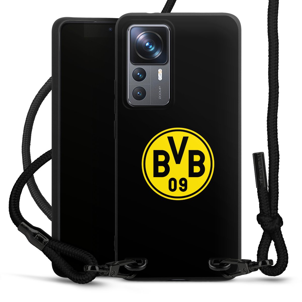 The matt black silicone case is made of flexible TPU (thermoplastic polyurethane) and offers robust protection. The durable, unbreakable material makes the cover flexible and dimensionally stable at the same time. The matte surface makes your design stand out more and is less susceptible to fingerprints and dirt. The stylish trend accessory fits comfortably in the hand and is perfectly complemented by the fabric (polyester) mobile phone strap. The braided fabric strap is approx. 1.70 metres long with a diameter of approx. 0.5 cm. Due to the special knotting technique, the length of the strap can be adjusted by simply pulling it, so that you can adapt it individually to your wishes. The practical case to wear around your neck is available with the fabric strap in black. As a little icing on the cake, we have provided the strap with a chic metal fastener in matt black. The strap is securely fastened to the case with loops made of high-quality genuine leather and press studs. The ends of the fabric strap are covered with metallic end caps and thus protected from fraying.