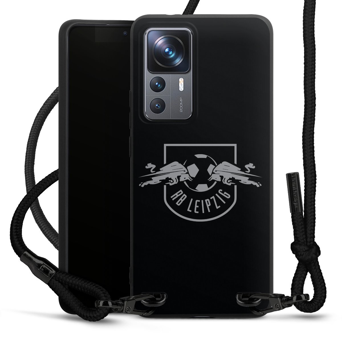 Pure Black: Phone case, fabric strap and metal details in stylish matt black.